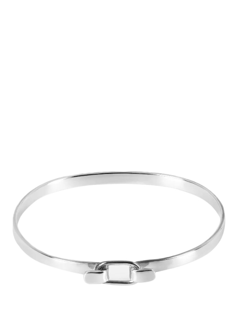 Inspired by the clean-cut of the belt buckle, the bangle offers a solid sterling silver texture and a central cut-out square detailing. It fastens with a hook clasp.