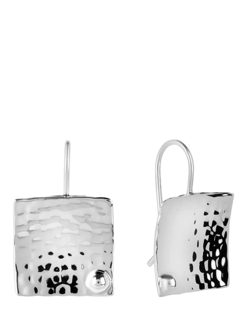 A smart pair of drop earrings from Andea that will add a touch of style to any outfit. Crafted from sterling silver they feature a curved square that has been gently hammered to achieve a textured finish and hoop ear fixings.
