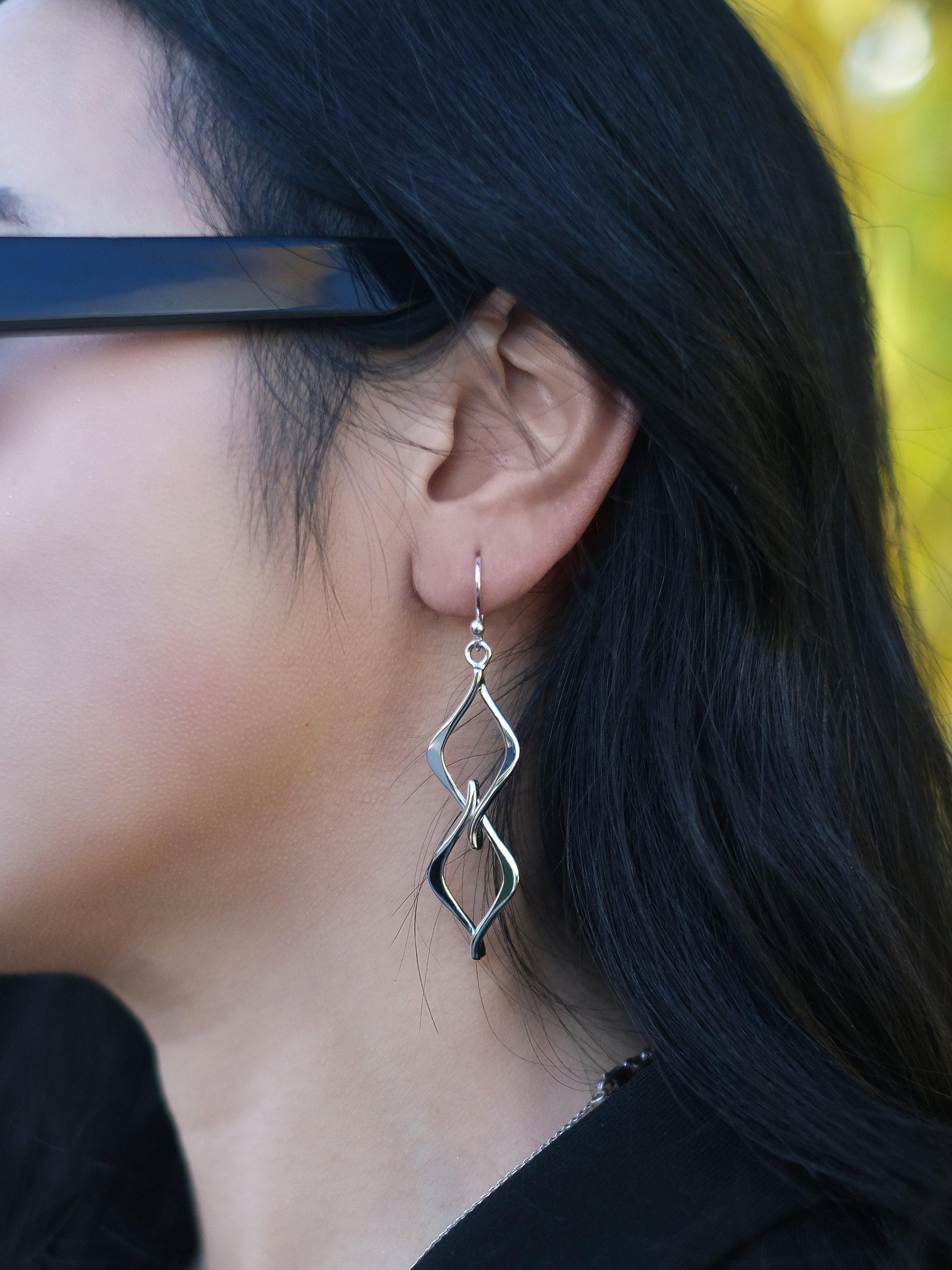 A statement piece of jewellery, these Andea drop earrings present two interlinked rhombus elements that will certainly attract attention. The earrings have traditional hook fittings that are for pierced ears only.