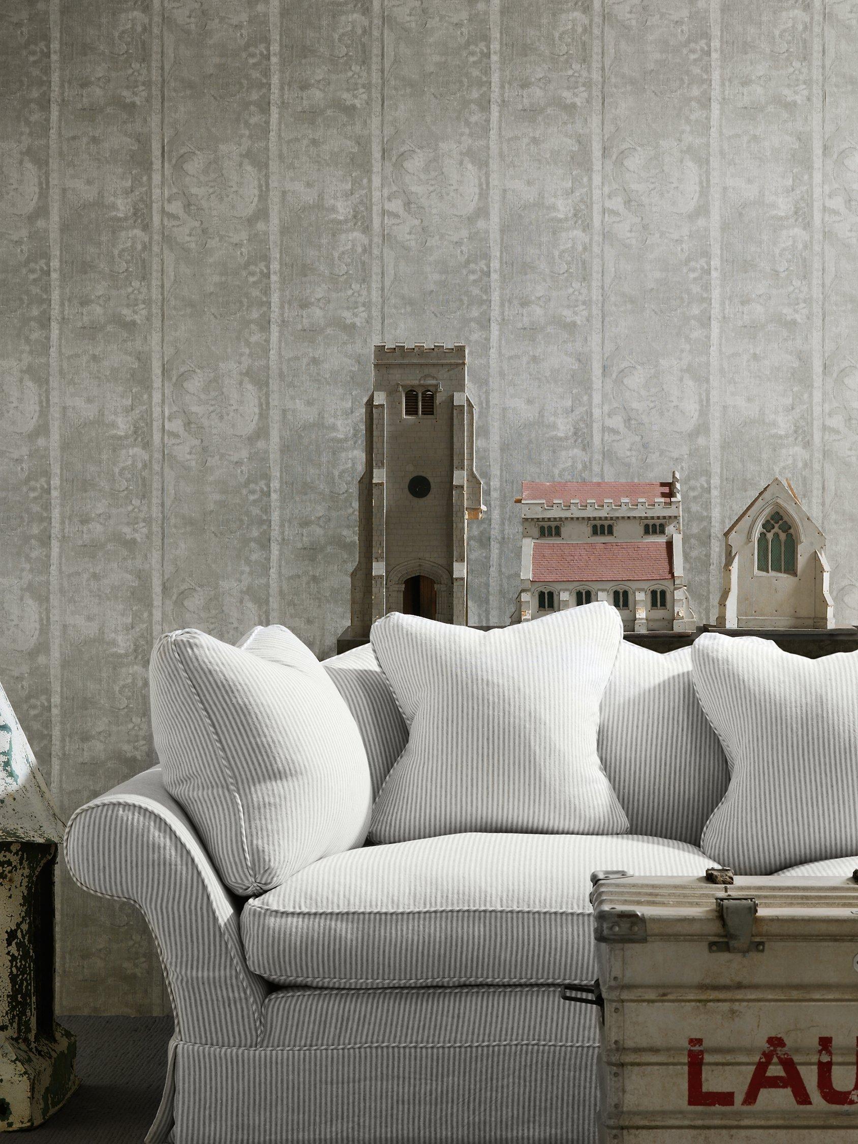 A faded and vintage threadbare tapestry rug effect wallpaper. Adds texture and vintage character to a wall.