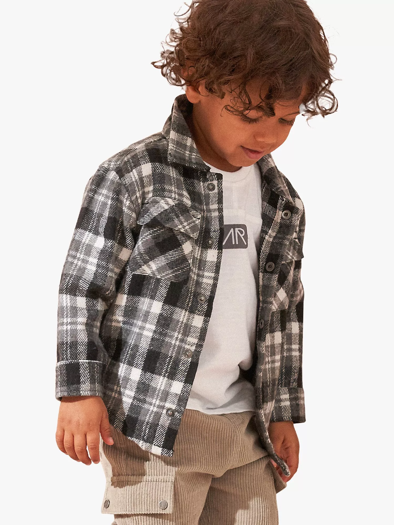 Keep them warm and comfortable in this brushed cotton overshirt, with patch pockets and a cosy long sleeve.
