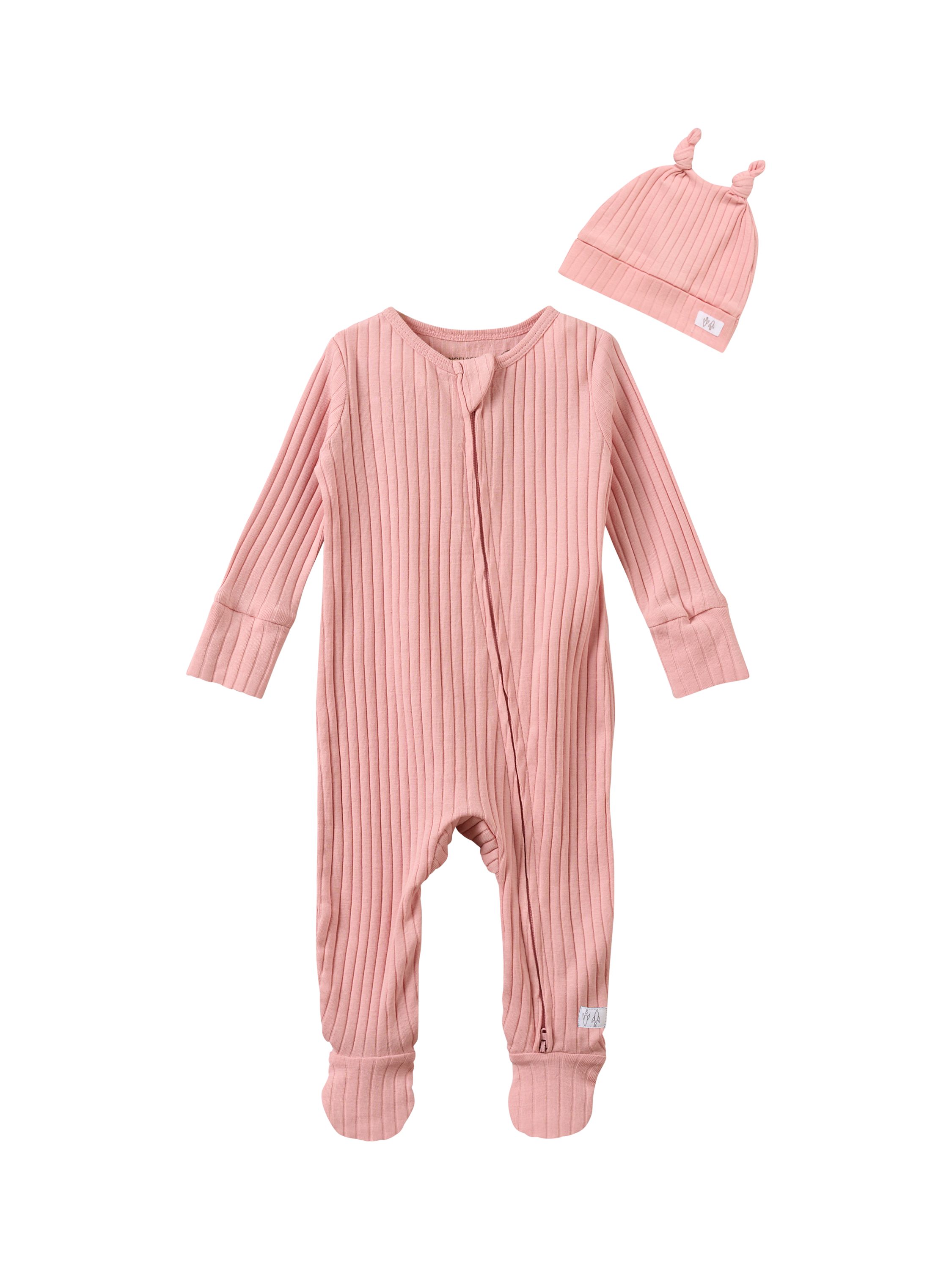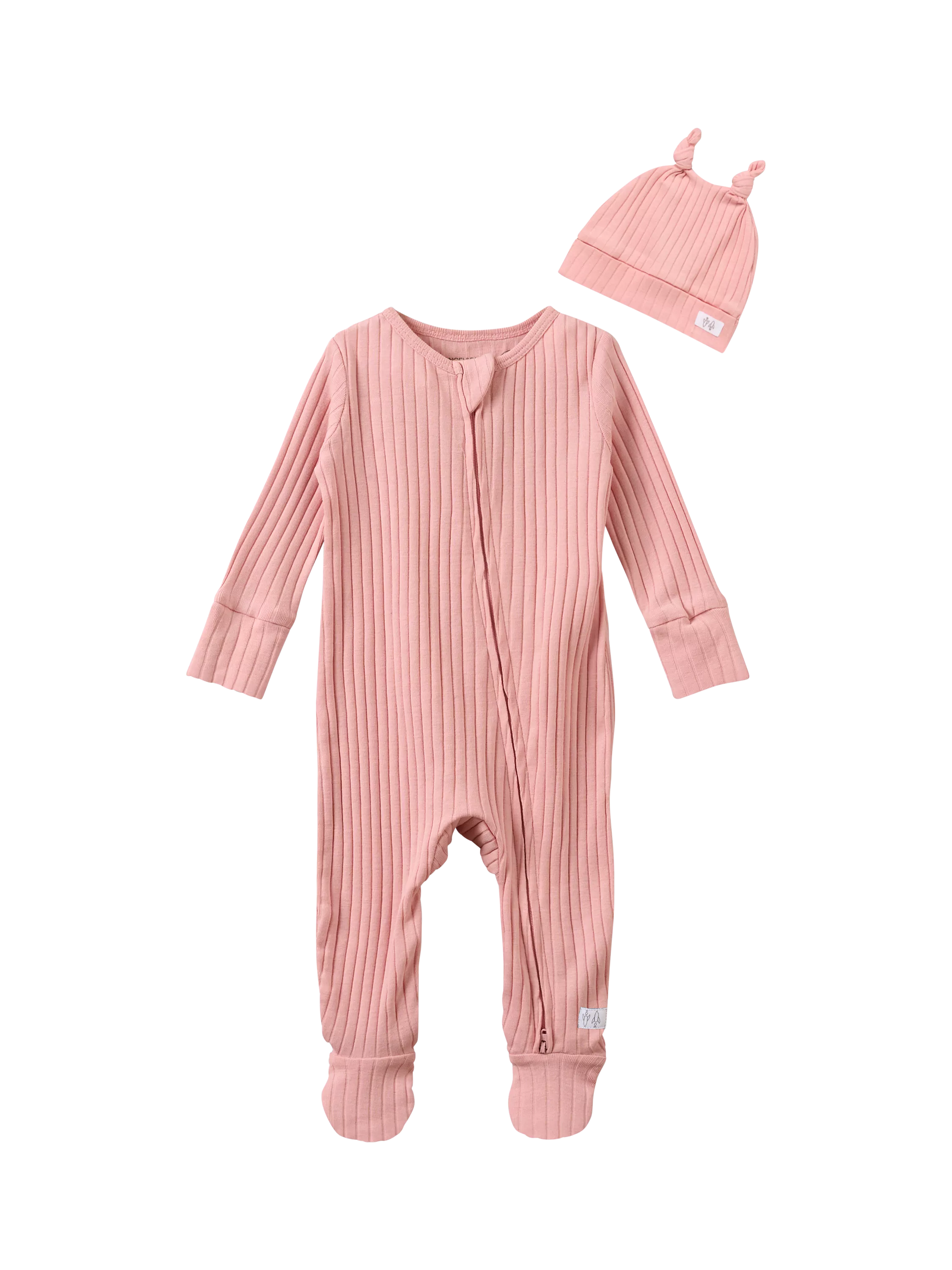 Angel & RocketBaby Cotton Rib Sleepsuit & Hat Set, Pink