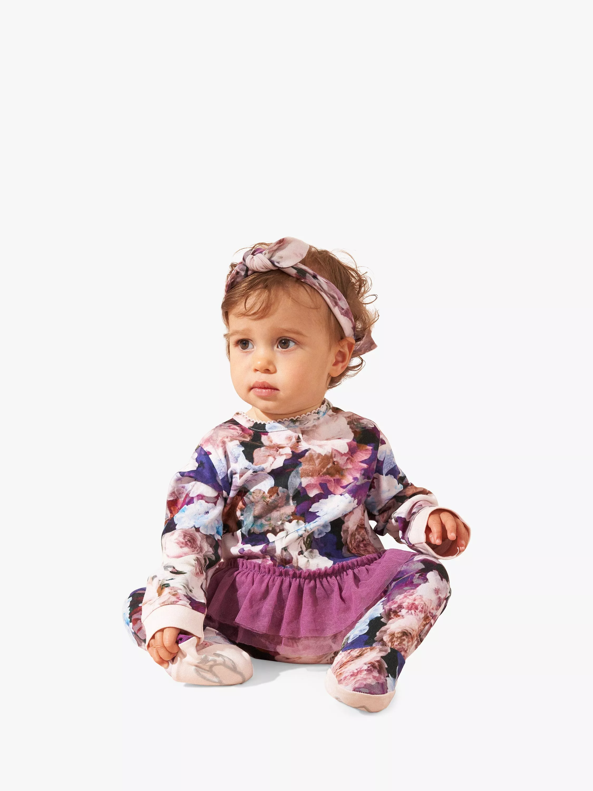 This adorable set includes an all-in-one bodysuit and matching bow headband. Crafted from super-soft cotton jersey in a bold floral print, the bodysuit is embellished with a tutu and has handy popper buttons on the leg for convenience when changing. They'll be snug all day, and standout during playtime.