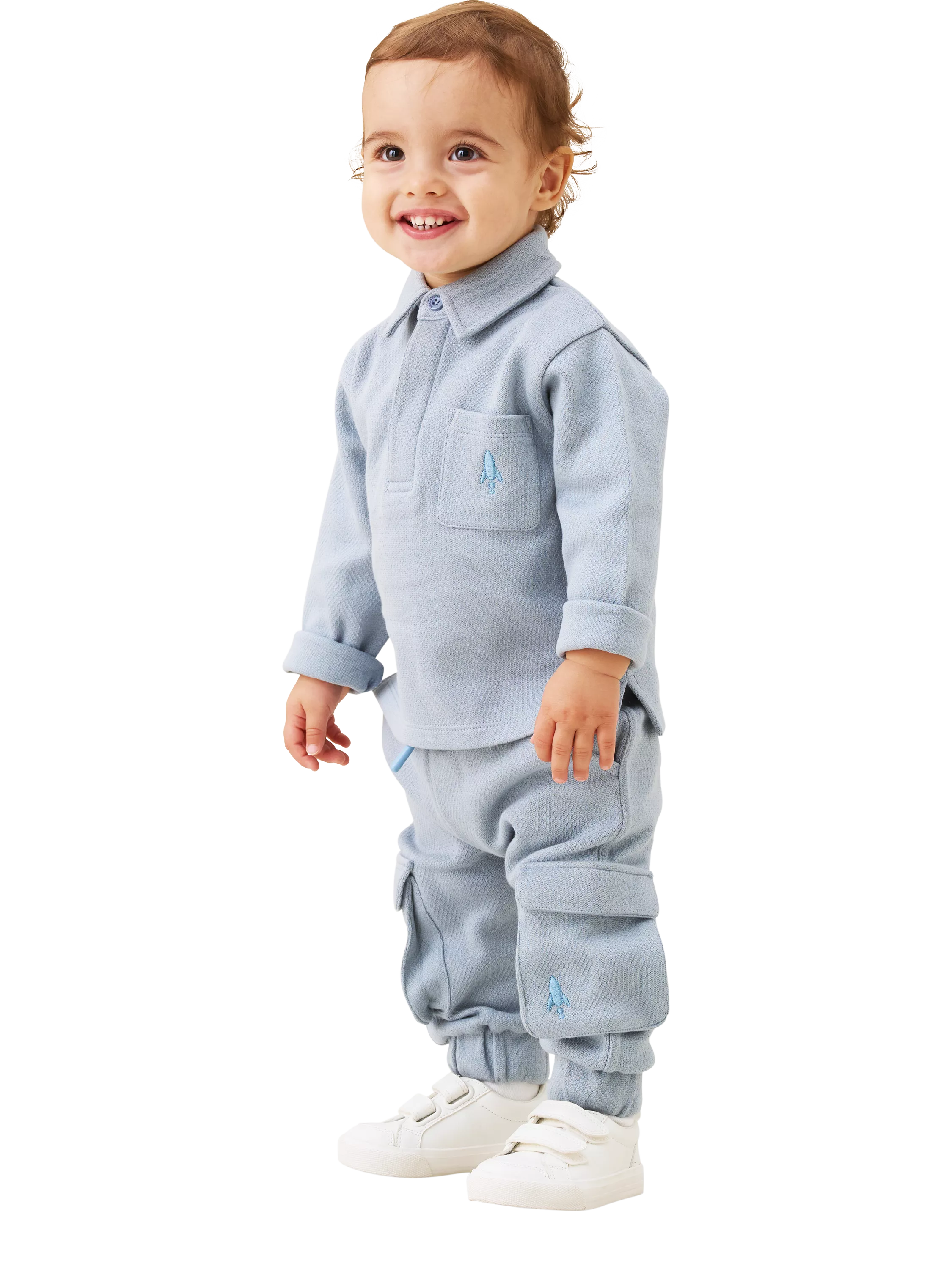 No little wardrobe is complete without this matching set! This co-ord is crafted from smart herringbone fabric for all-day comfort. The bottoms feature a gentle elasticated waist and drawstring detail for an easy fit. Your little one will never want to take if off!
