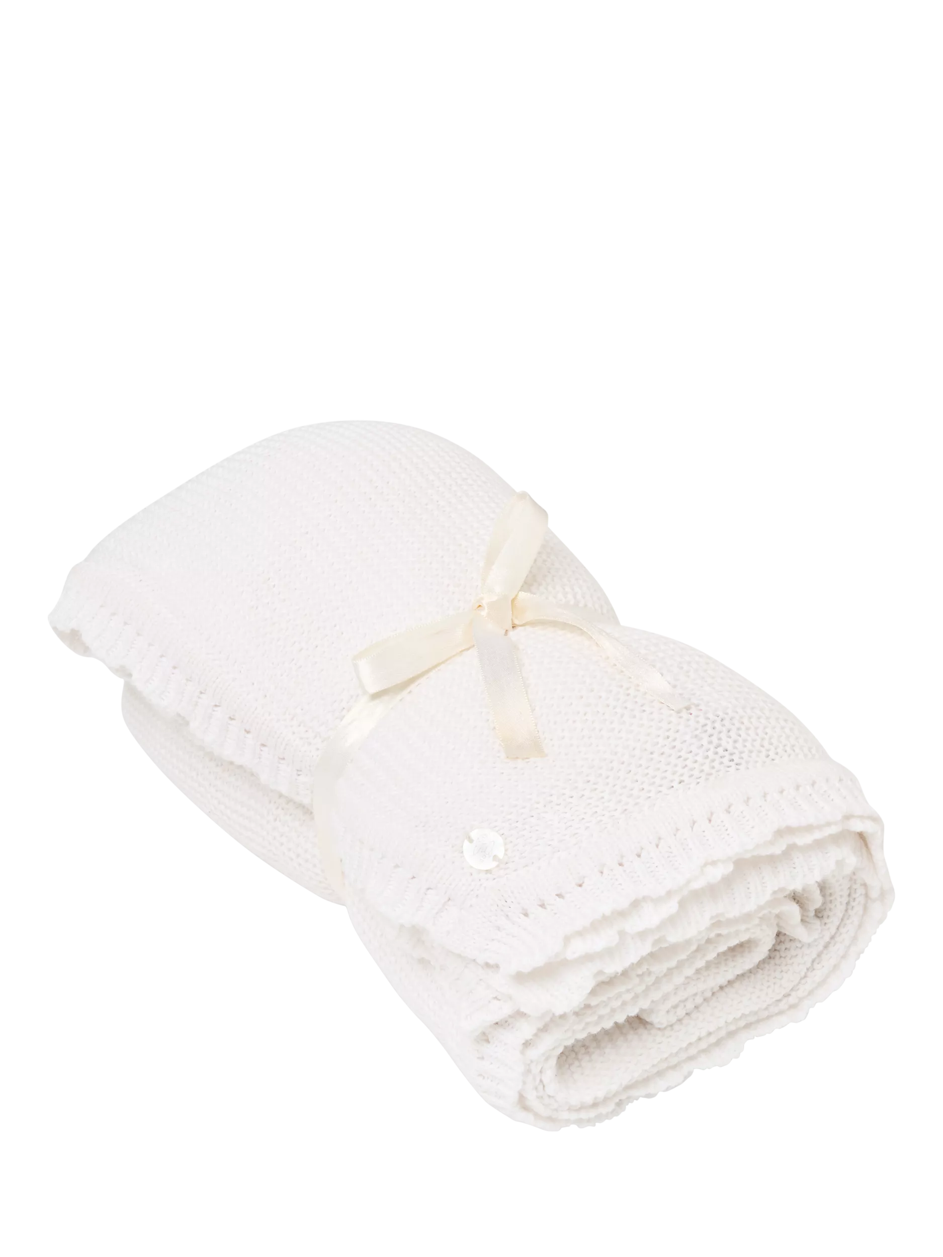 This ultra-snuggly knitted blanket is the perfect gift for newborns. Great for out and about, taking baby for strolls, or simply for cuddles. Suitable only for infants that are not yet mobile and cannot roll over on their own.