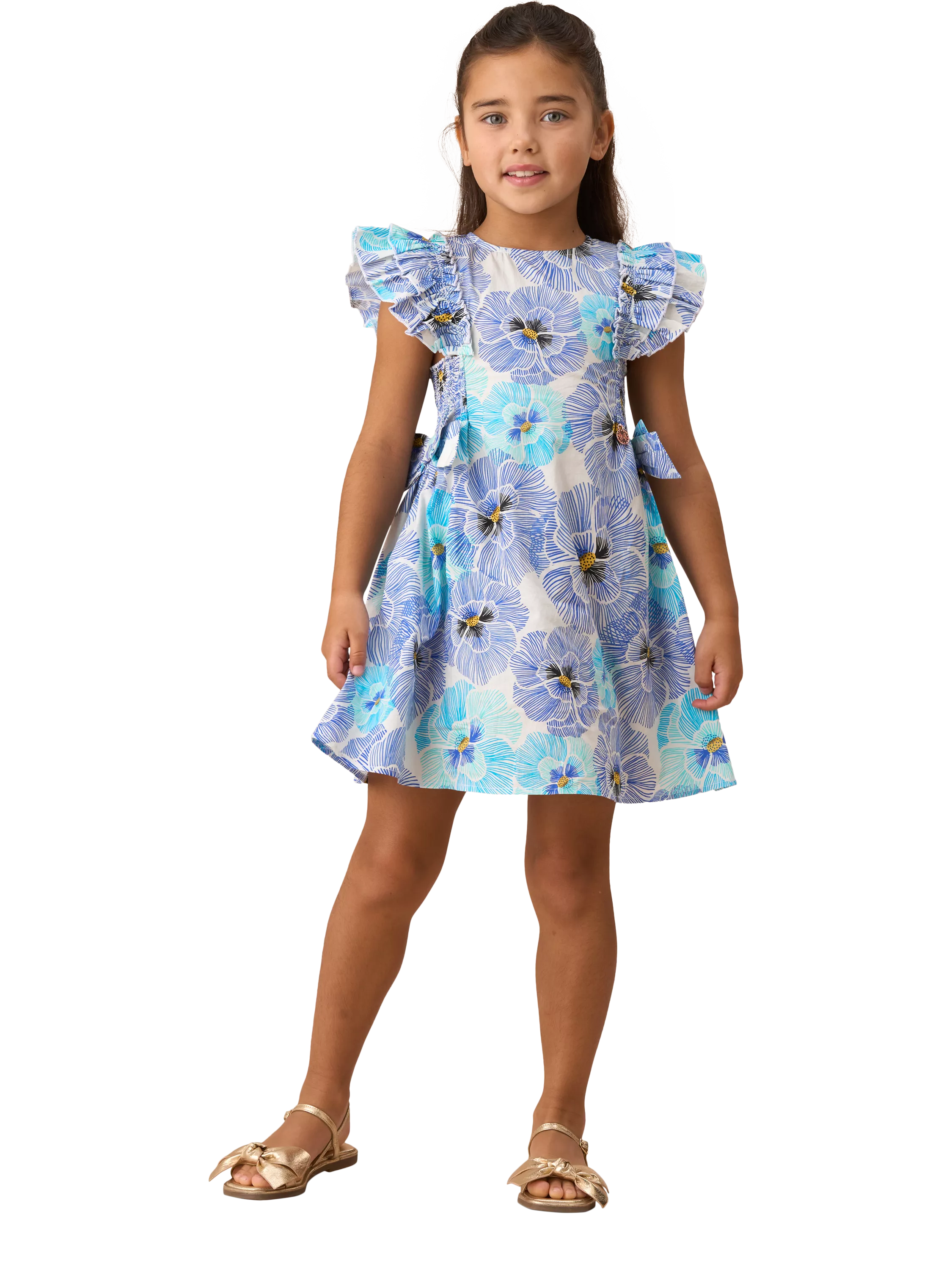 Oversized blooms? Tick. Oversized bows? Tick. This dress has it all! The Alessandra dress is crafted from crisp cotton featuring statement ruffle sleeves and shirred panels, making it the perfect blend of comfort, style and fun. Blooming marvellous!