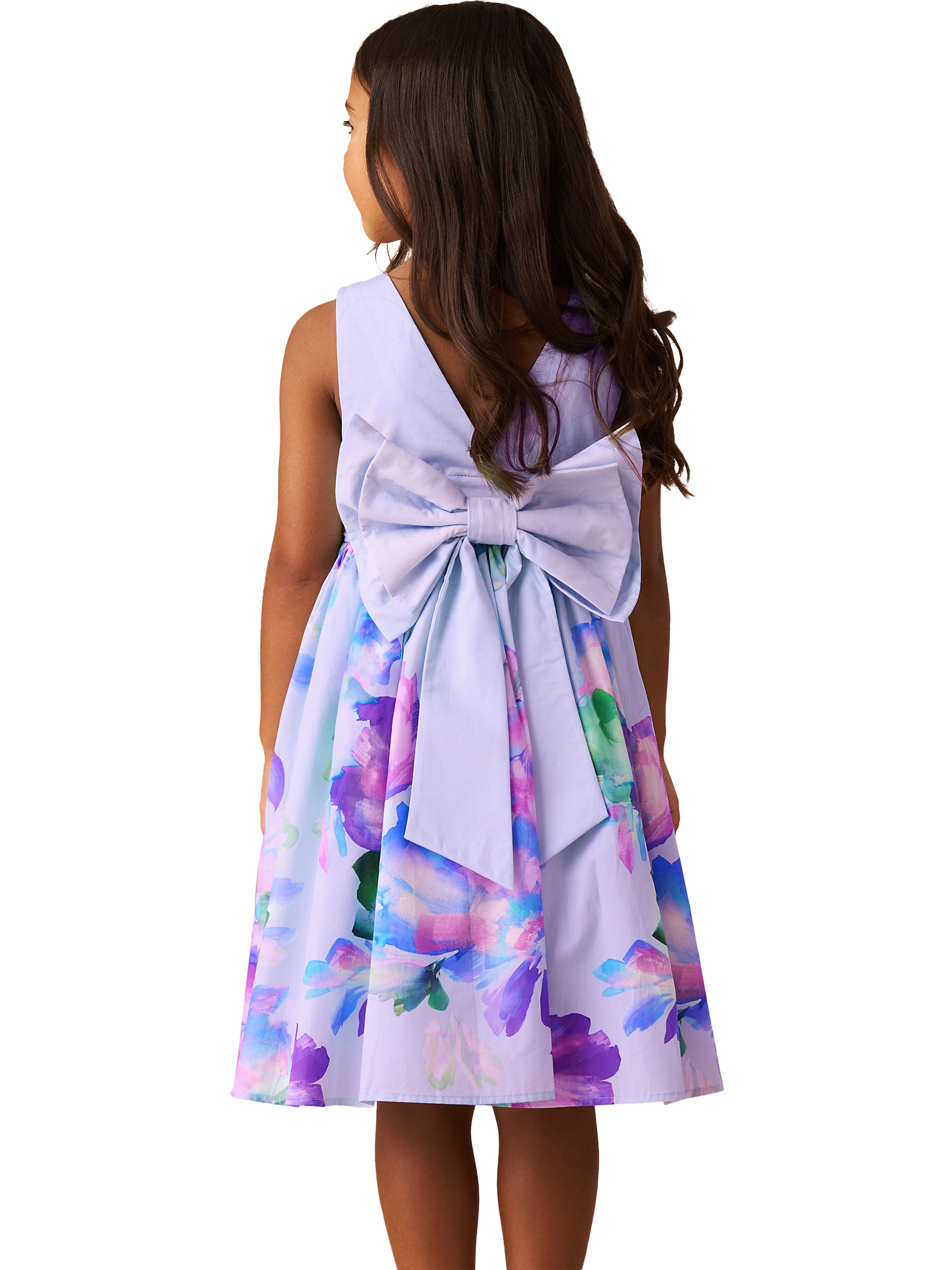 This dress is un-BOW-lievable! A gorgeous hand-painted floral border print dress in tones of purple. The standout feature of this dress is the oversize bow which adds oodles of playful drama. It's a fun and stylish choice for that special occasion.