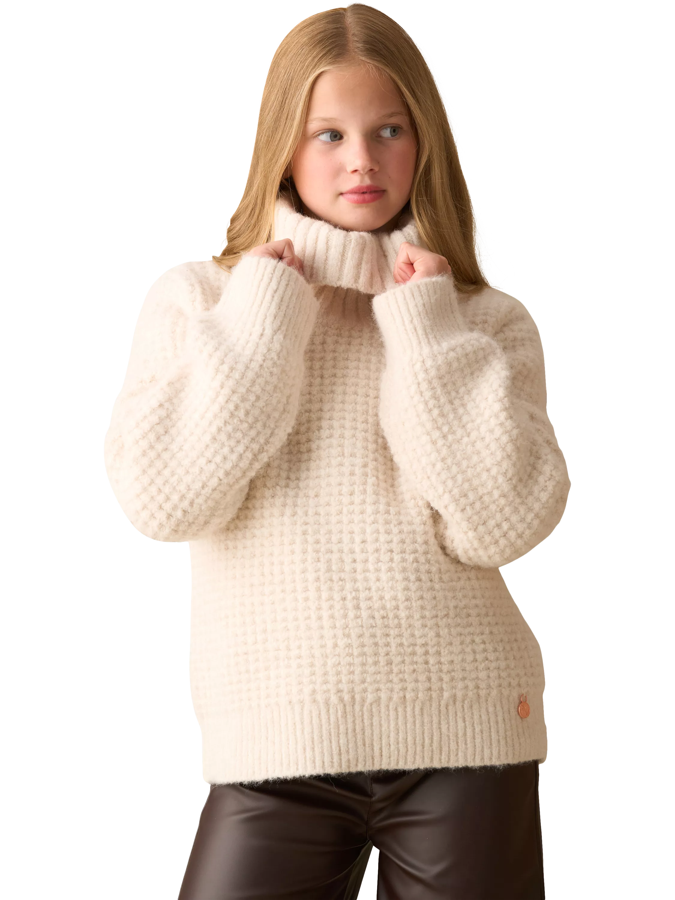 Snug in Style! The chunky cream waffle-knit jumper is a winter wardrobe essential. With its oversized roll neck and relaxed fit, it’s made for layering, lounging, and staying warm in style. Super soft and effortlessly cool!