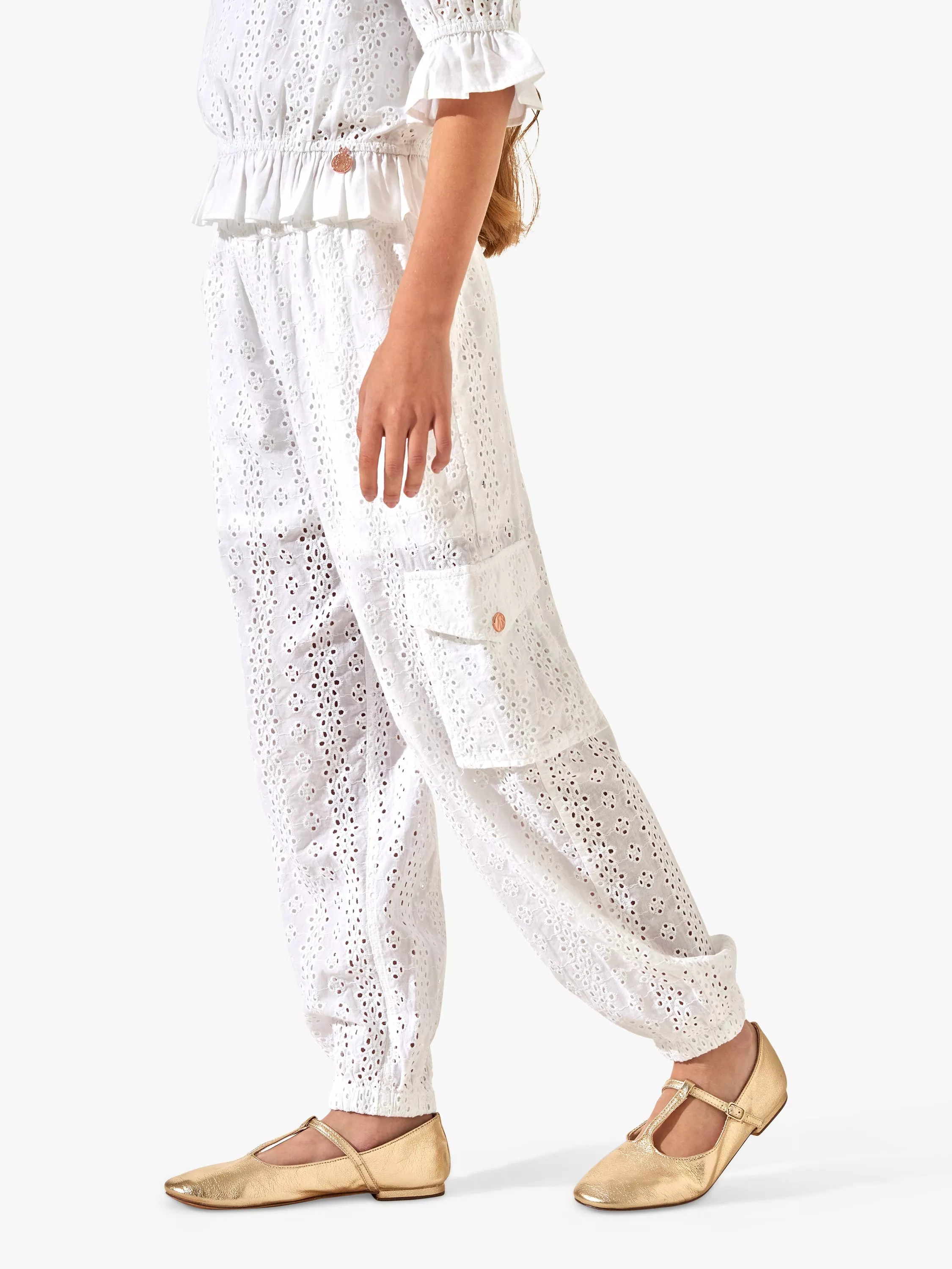 Angel & RocketKids' Cleo Broderie Cargo Trousers, White