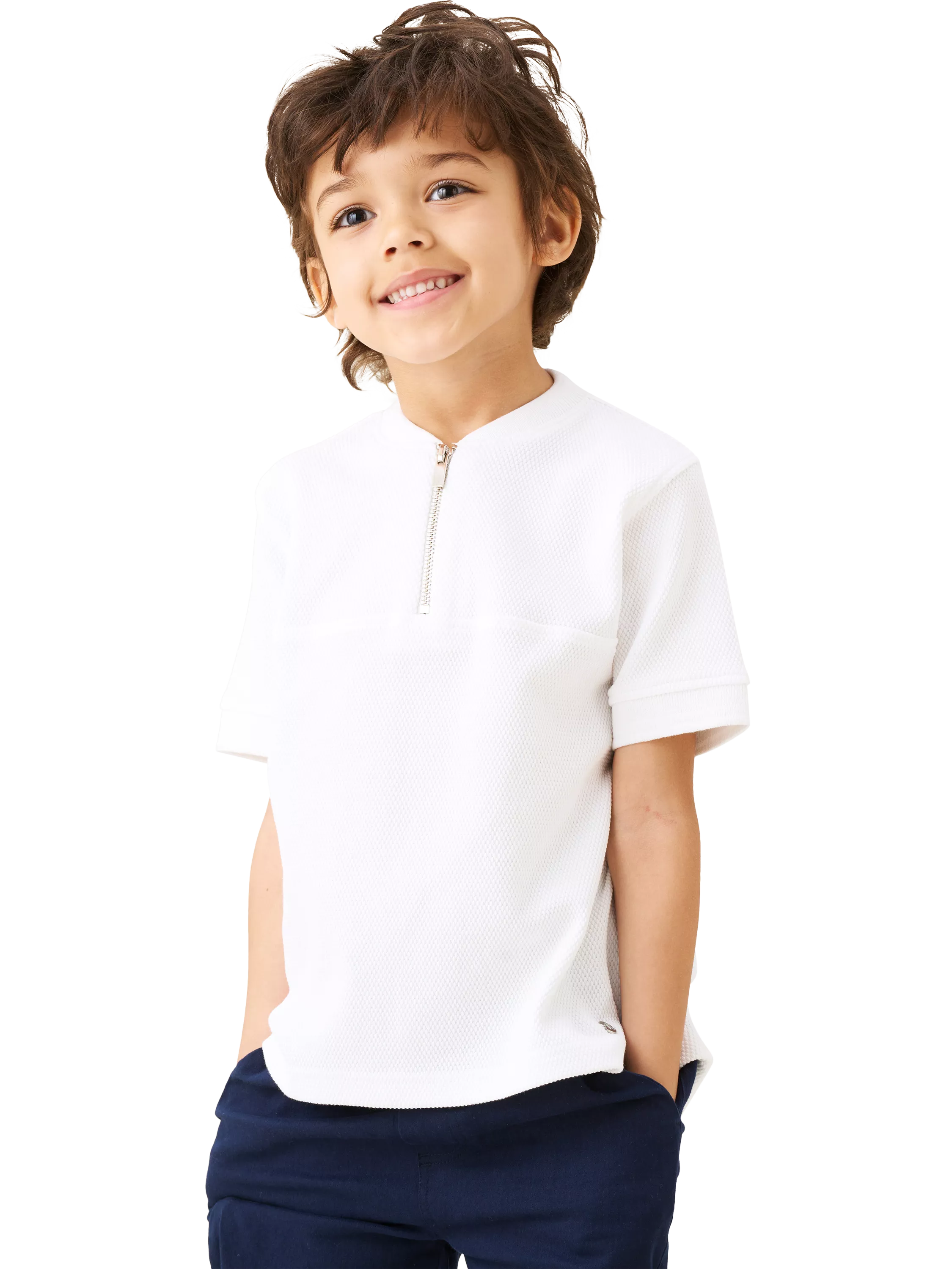 Smart casual styling gets an upgrade. This crisp white polo shirt features a popcorn knit texture and a zip-through front, finished off with branded hardware for that signature touch. Pairs perfectly with your favourite denim or chinos.