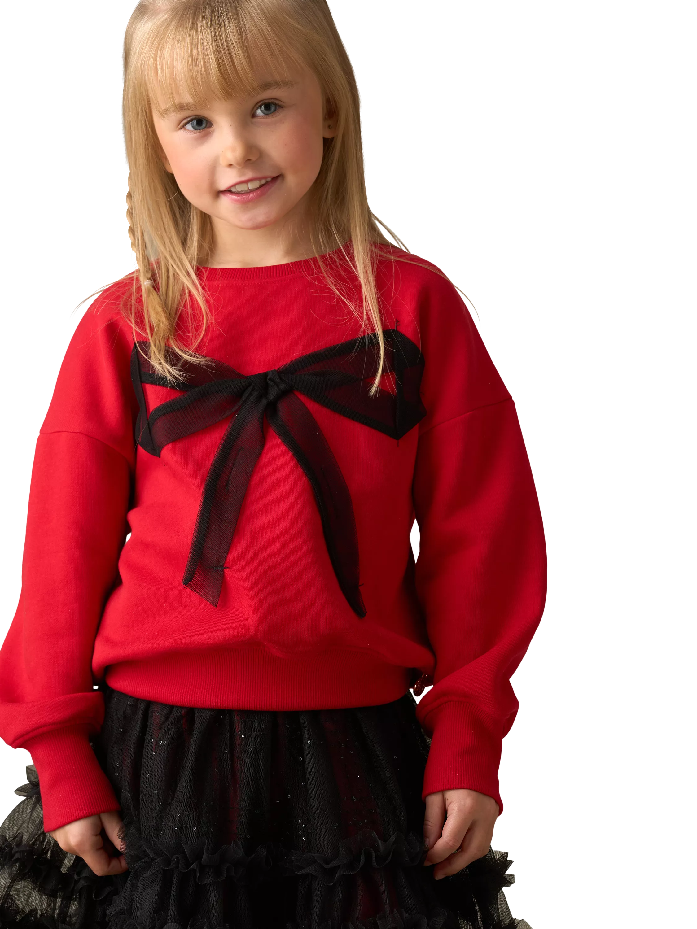 They're going to fall for this super-soft red sweat, finished with a statement mesh bow. Crafted from a soft cotton-rich blend.