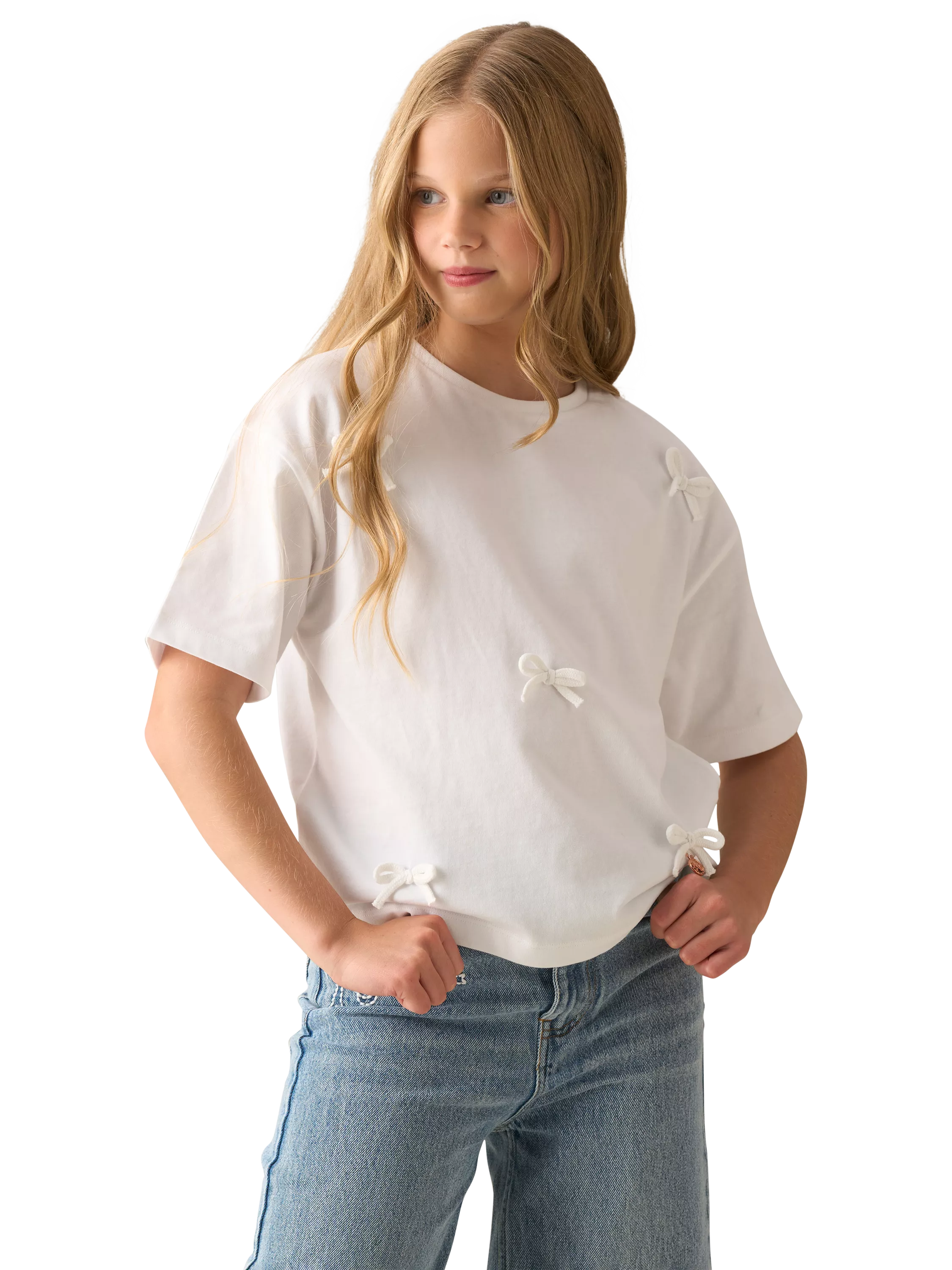 This boxy tee is scattered with bows making it the perfect, versatile top! Tuck it into your favourite denim for an effortlessly cool vibe.