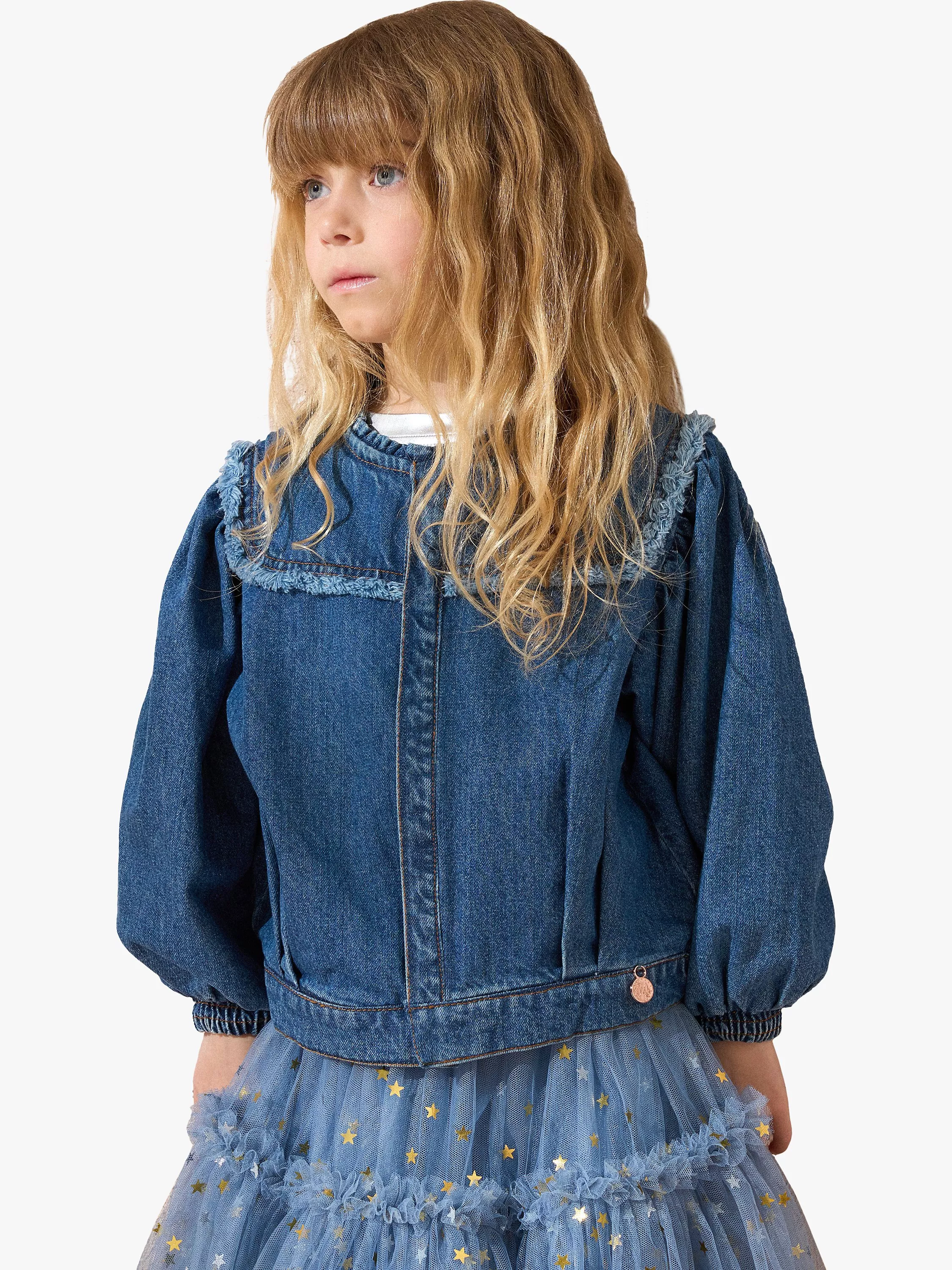 This shirt style denim jacket is crafted from heavy weight cotton denim, showcasing a unique back yolk detail and blouson sleeve.