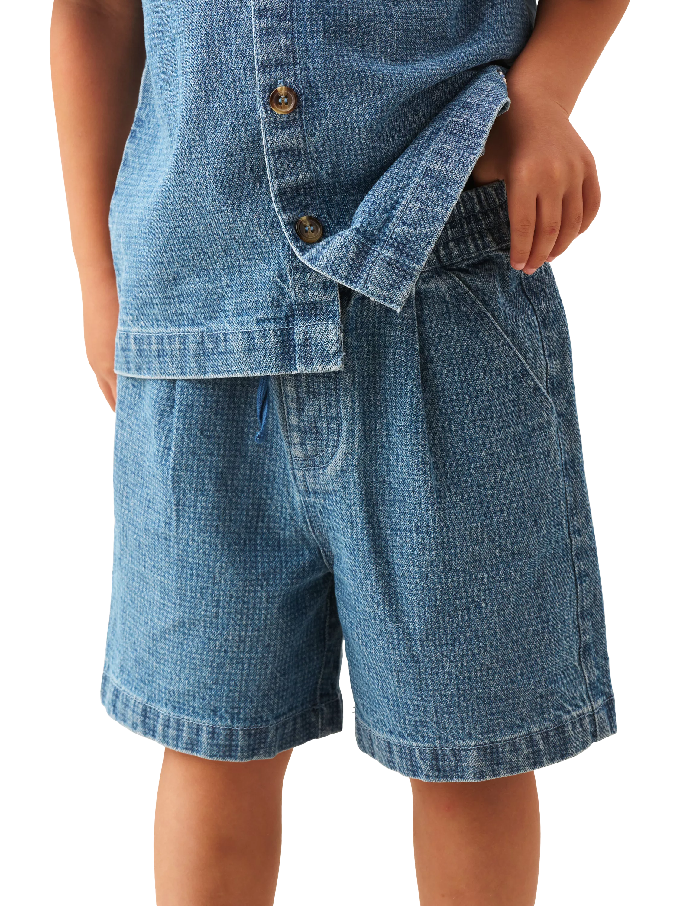 These jacquard textured denim shorts are a modern twist on a classic. Cut in a relaxed fit with an elasticated waistband, these shorts will be worn on repeat all summer long.
