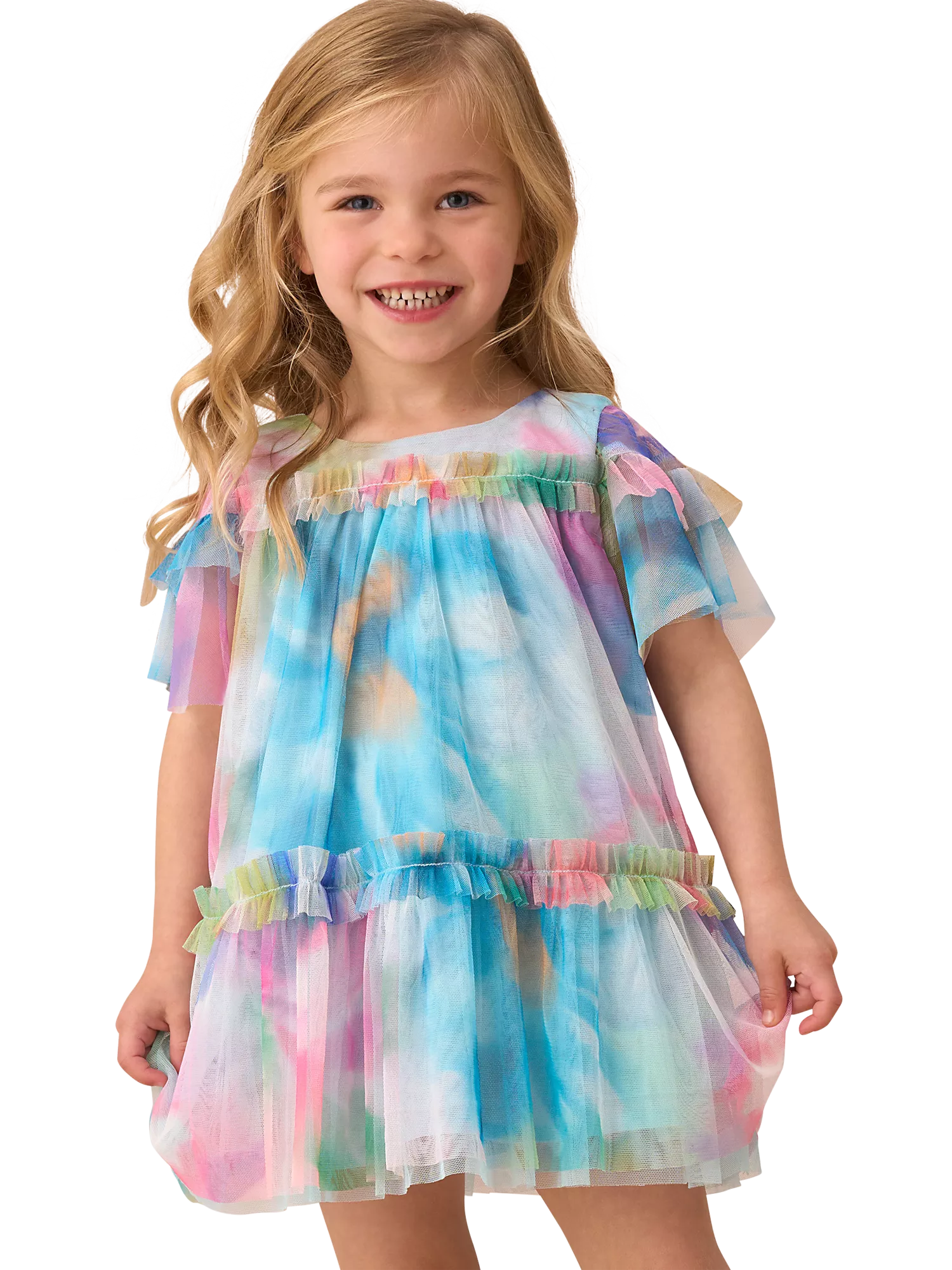 There's not mesh you won't love about this dress! Beautiful oversized blooms printed on dreamy diaphanous mesh fabric with soft tiers and a stunning sweeping silhouette. Matching bloomers add comfort and practicality.