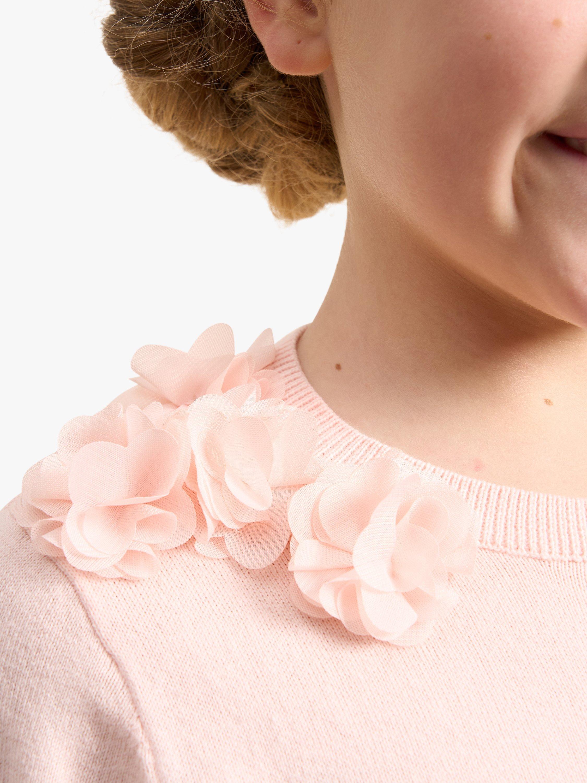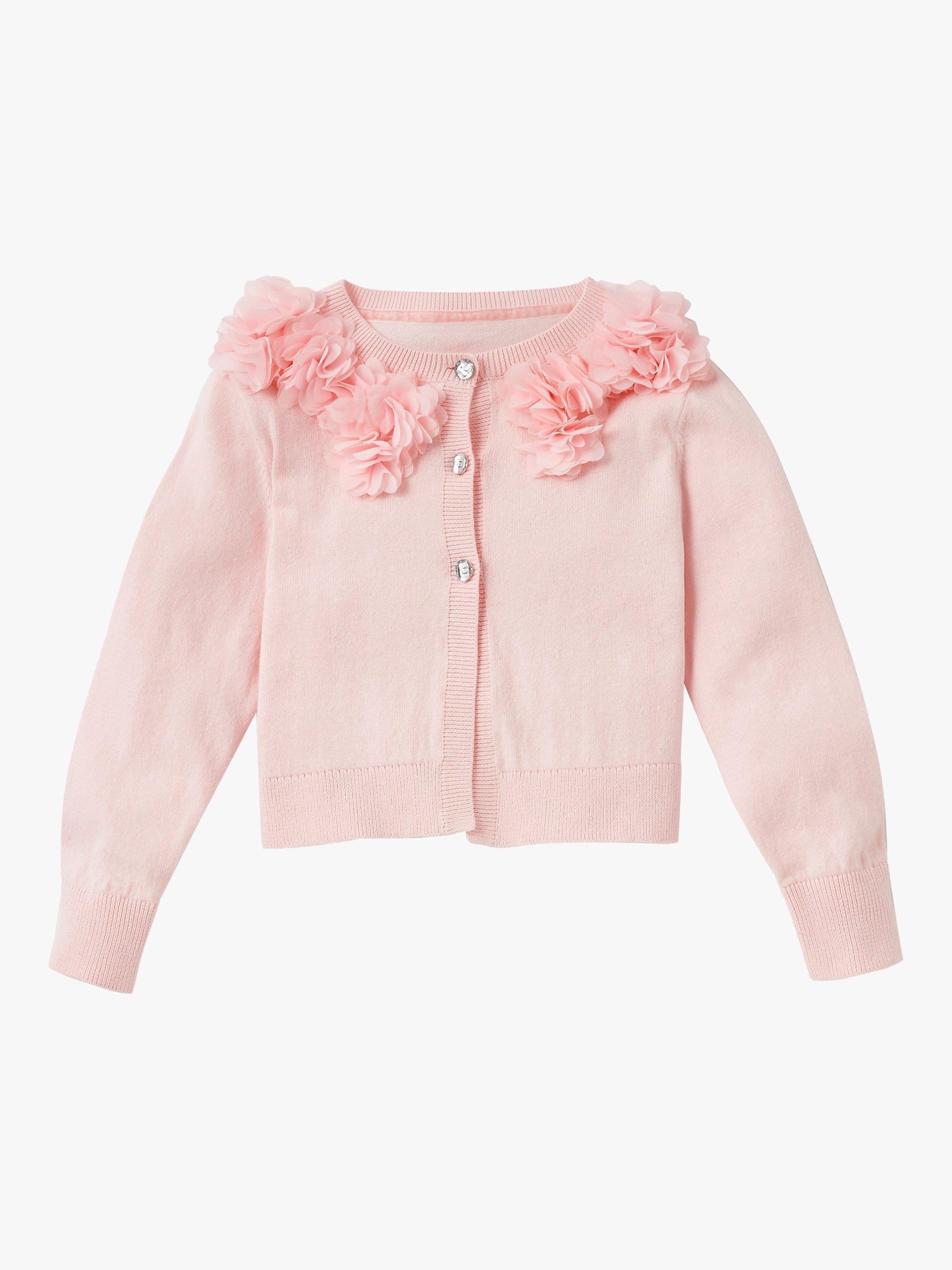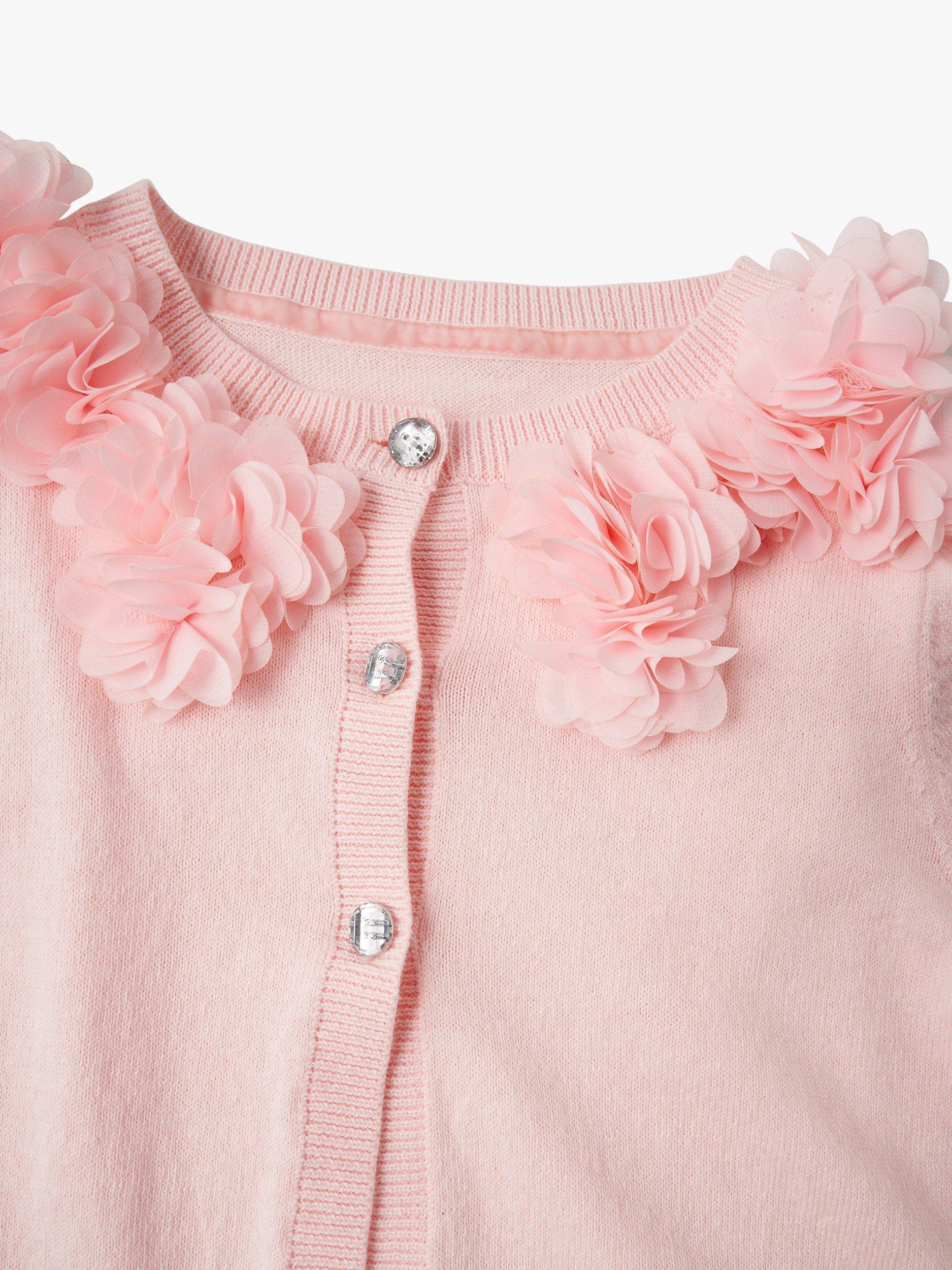 The perfect occasion wear cover up. A super soft cotton knit with delicate mesh flower detail scattered around the neckline and the prettiest diamante buttons.
