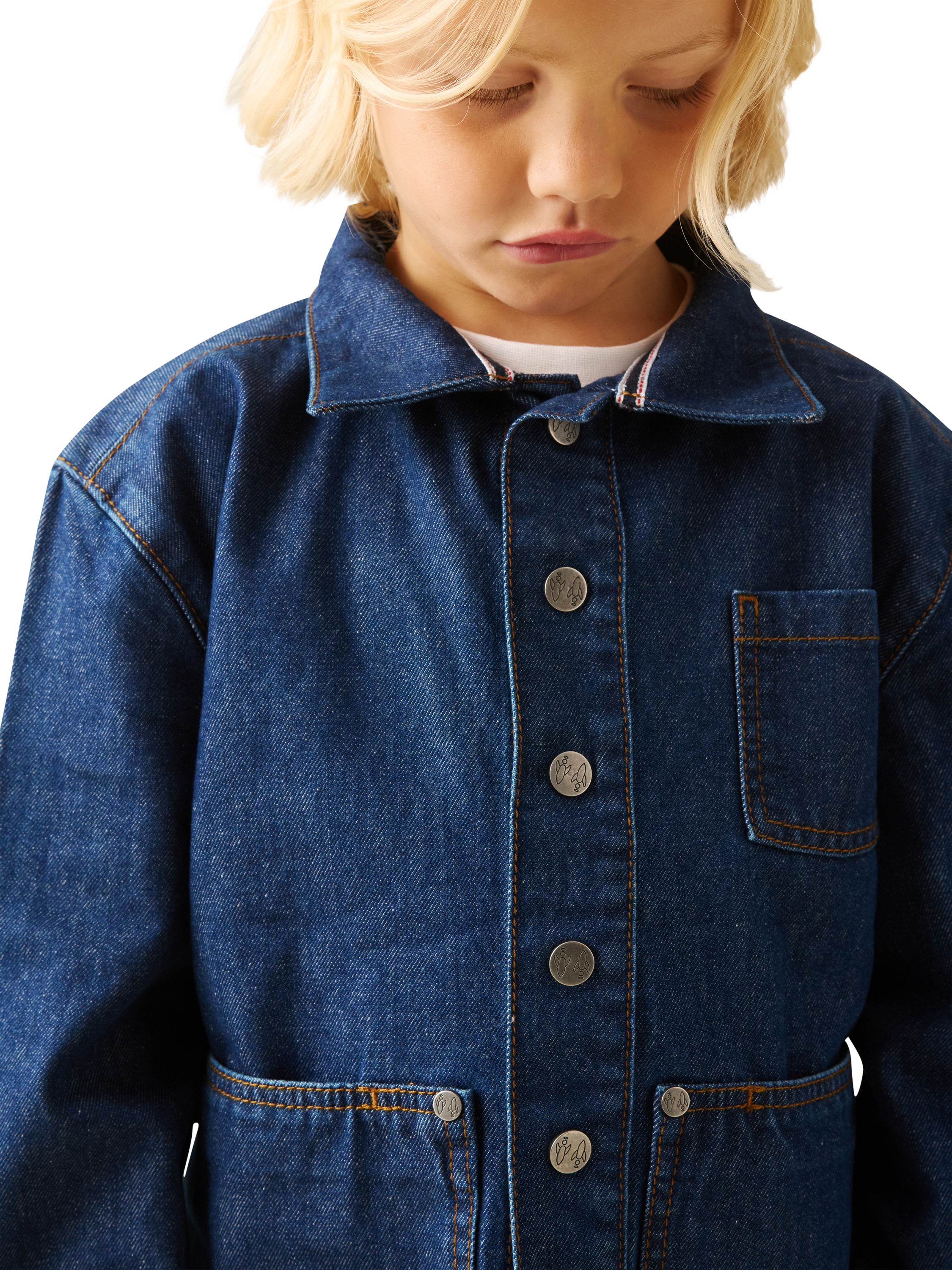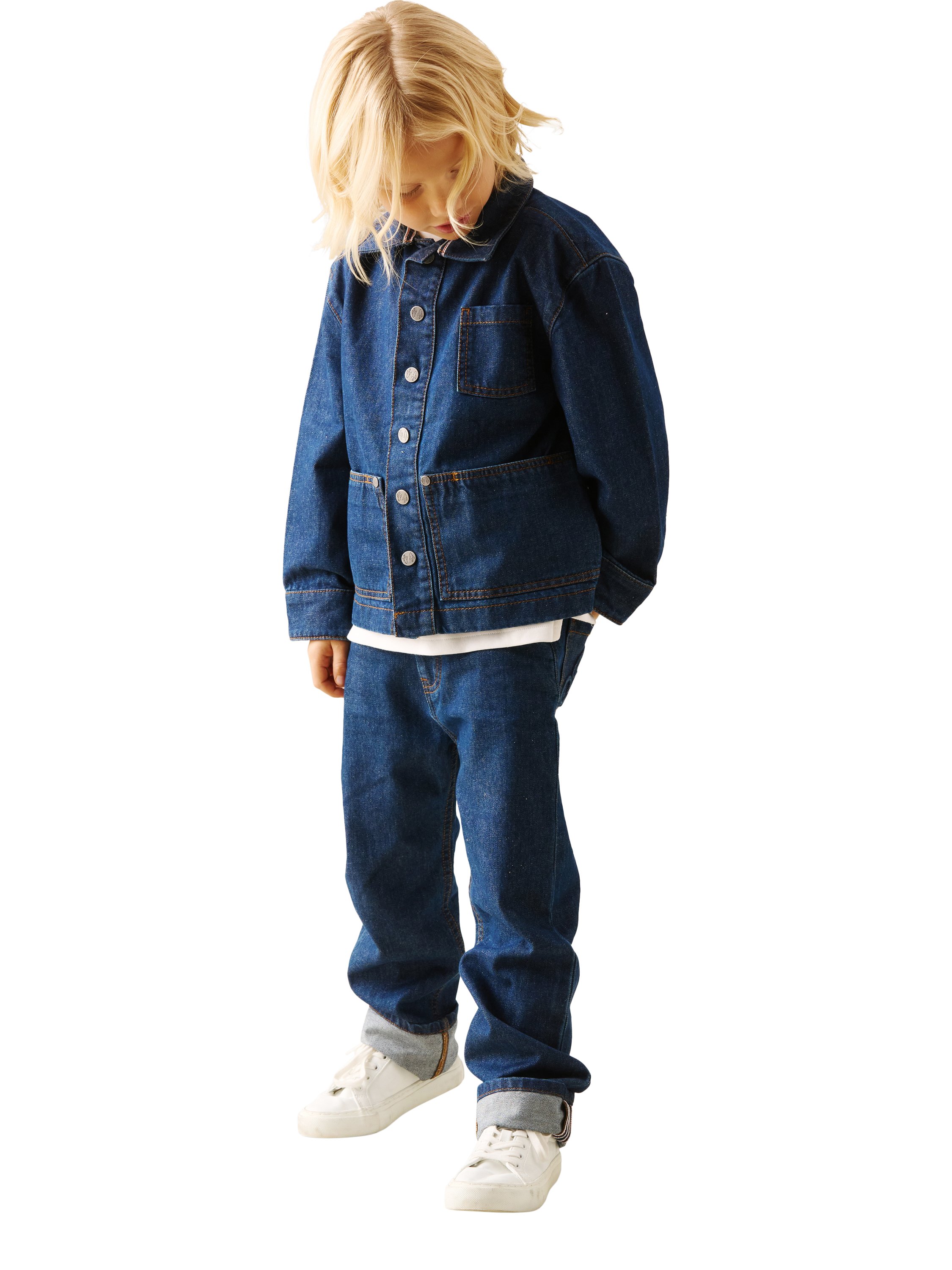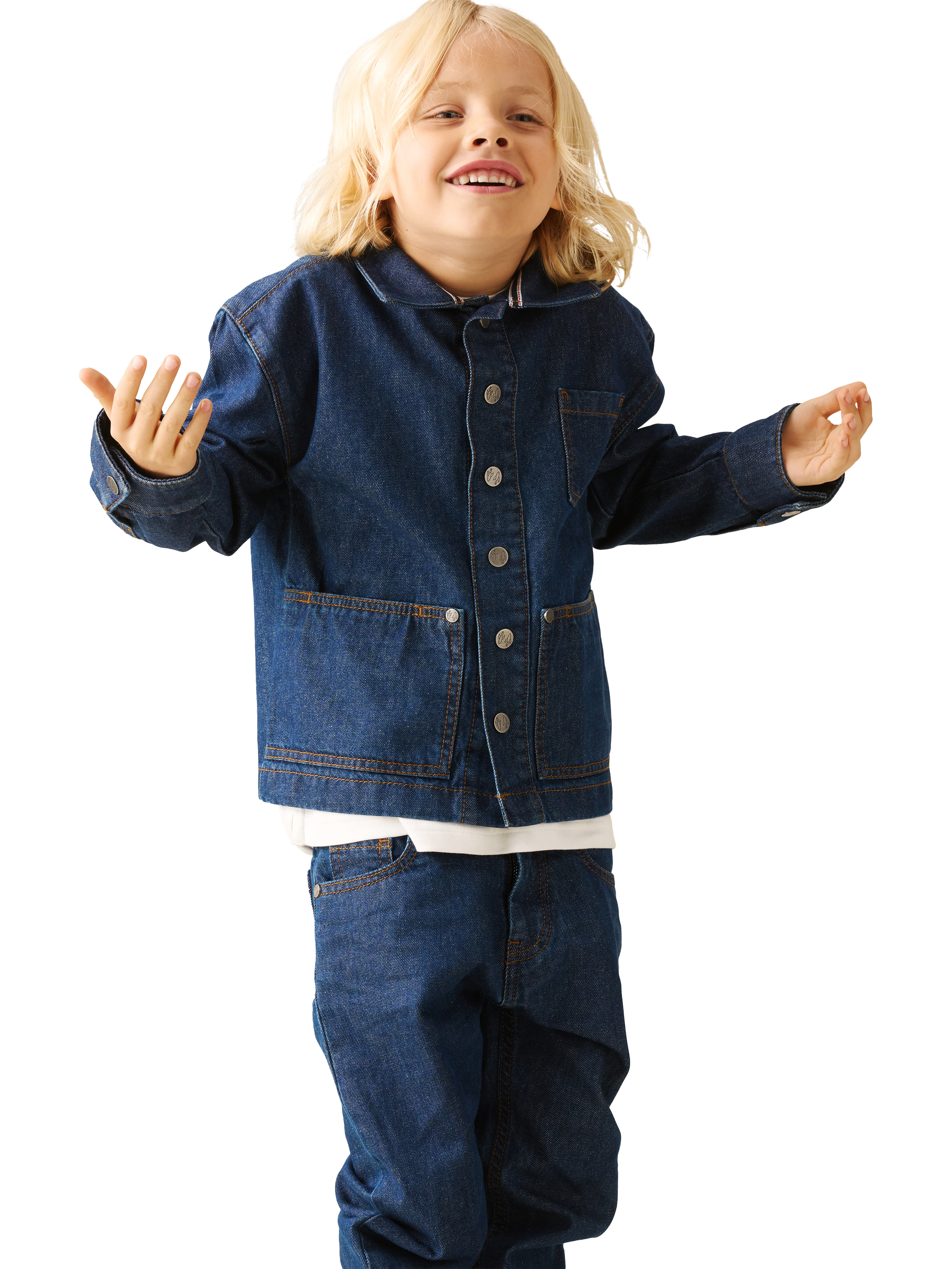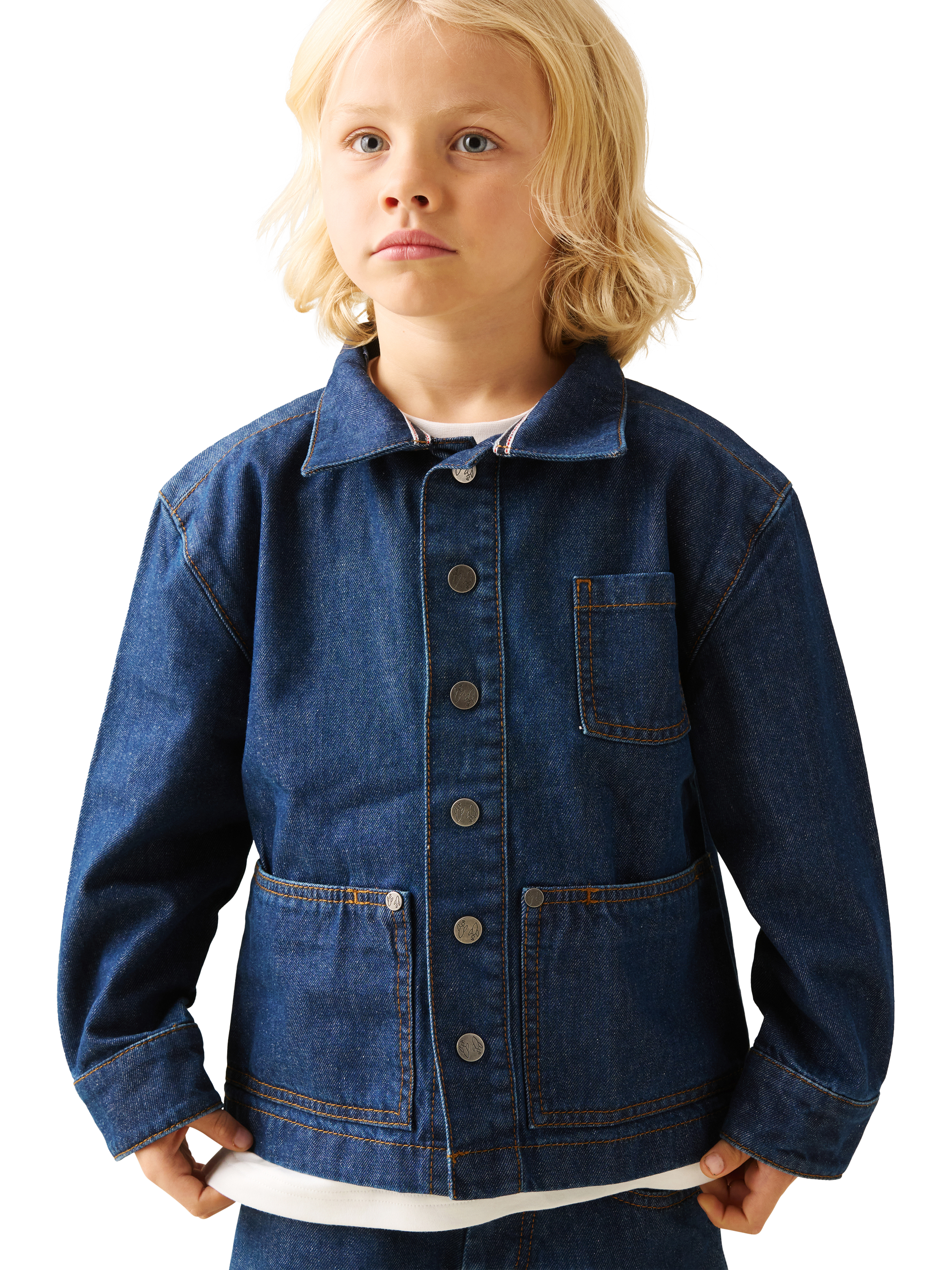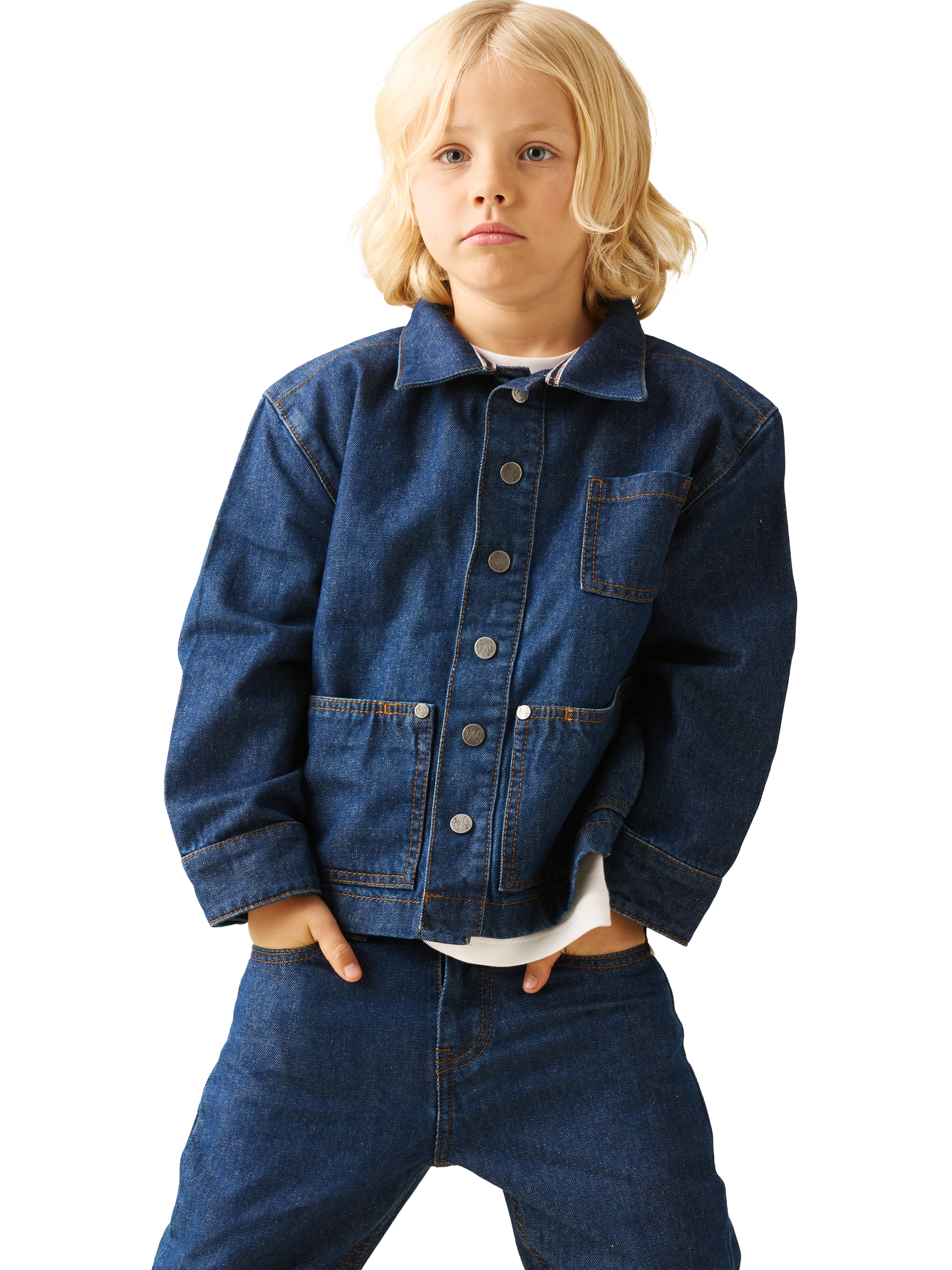 This denim jacket is designed with authentic stitching, button-through front, and oversized pockets. A true wardrobe hero that works for playdates, weekends, and everything in between.