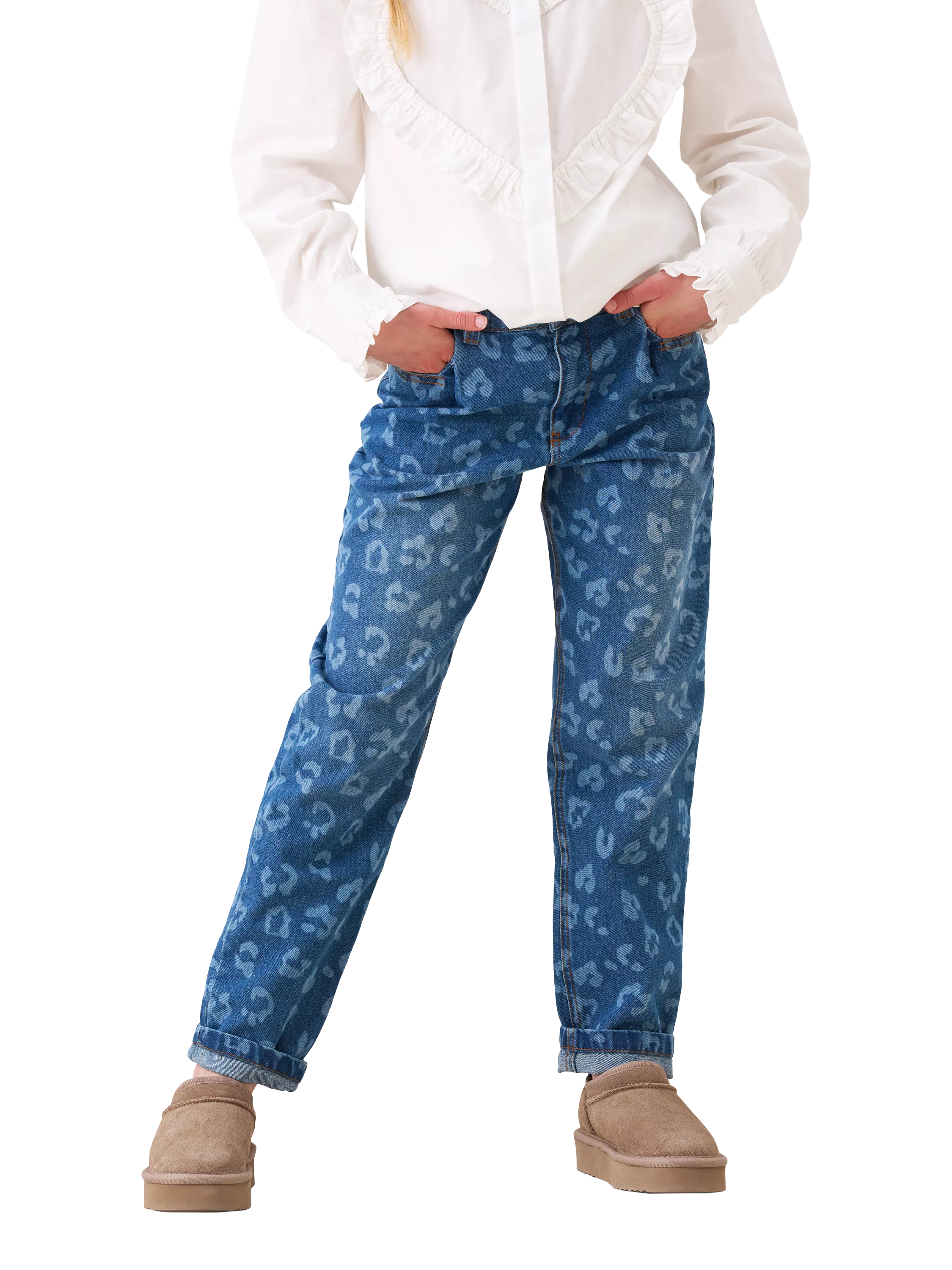 Turn heads in these fierce leopard print jeans. Crafted with laser print denim for an authentic look and finished with sleek metal hardware, the on-trend barrel leg is the perfect mix of edgy and stylish.