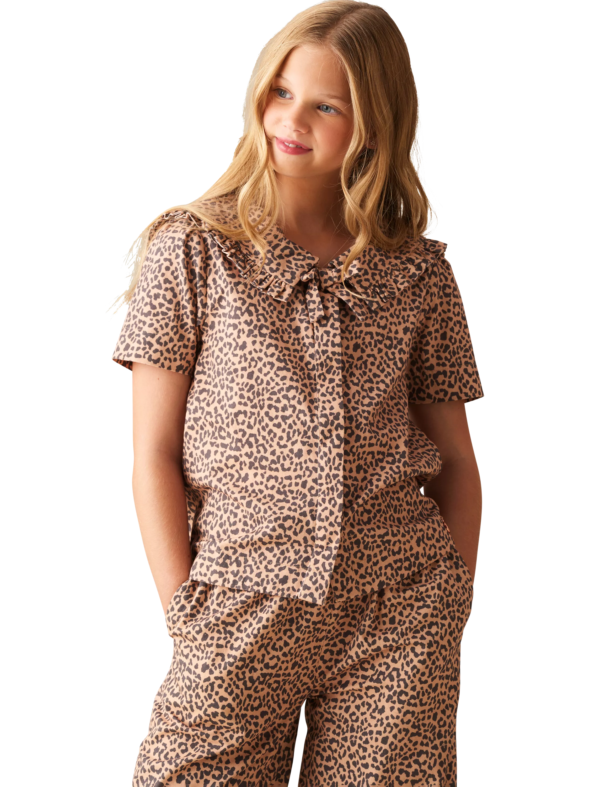 Featuring bold leopard print with a statement collar, this blouse is fierce and totally fabulous. Pair it with the matching trousers for a wild and wonderful look that roars with personality.
