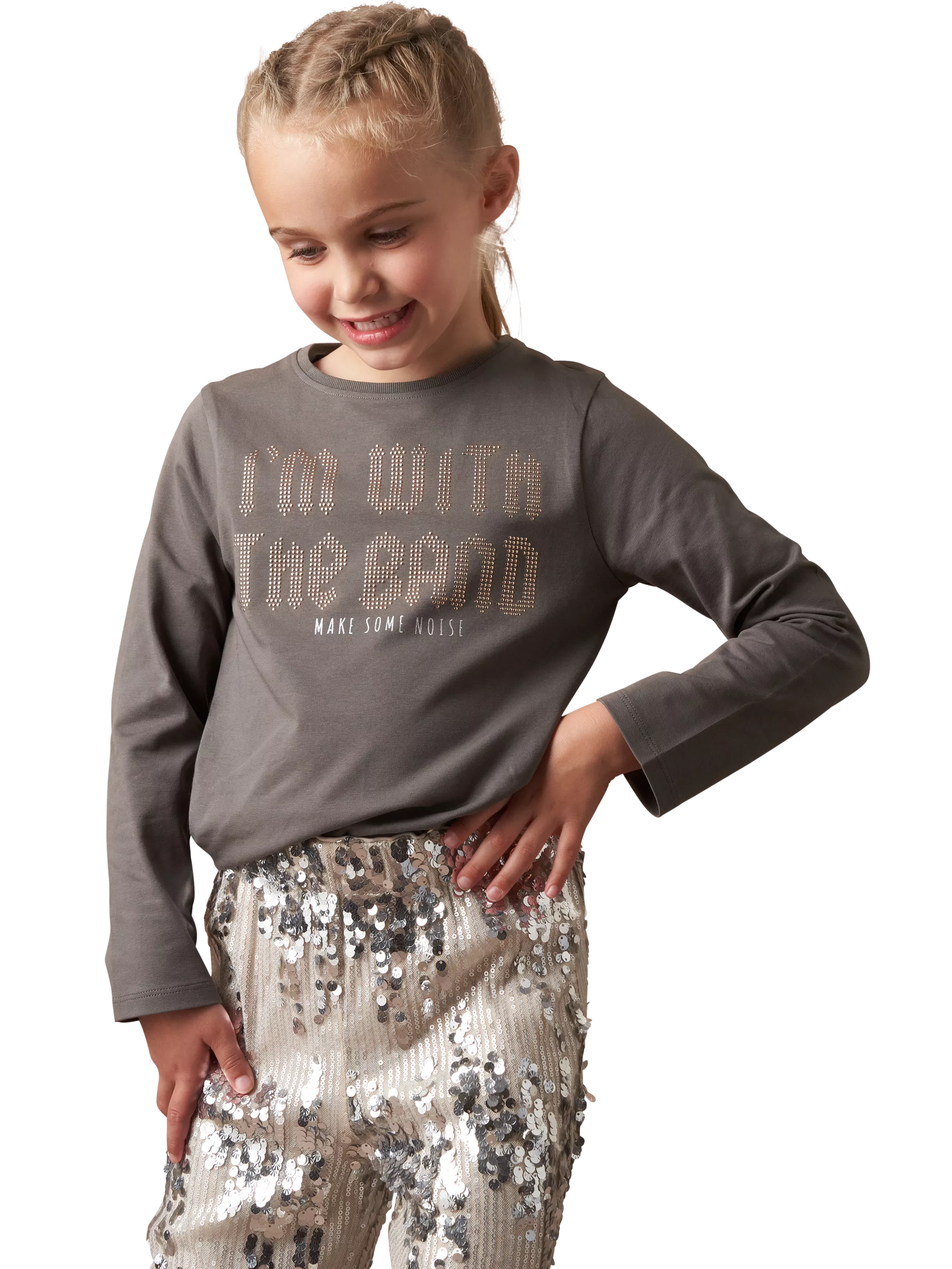 I'm with the band! Channel your inner rocker with this super soft cotton jersey from Angel & Rocket featuring a studded slogan.