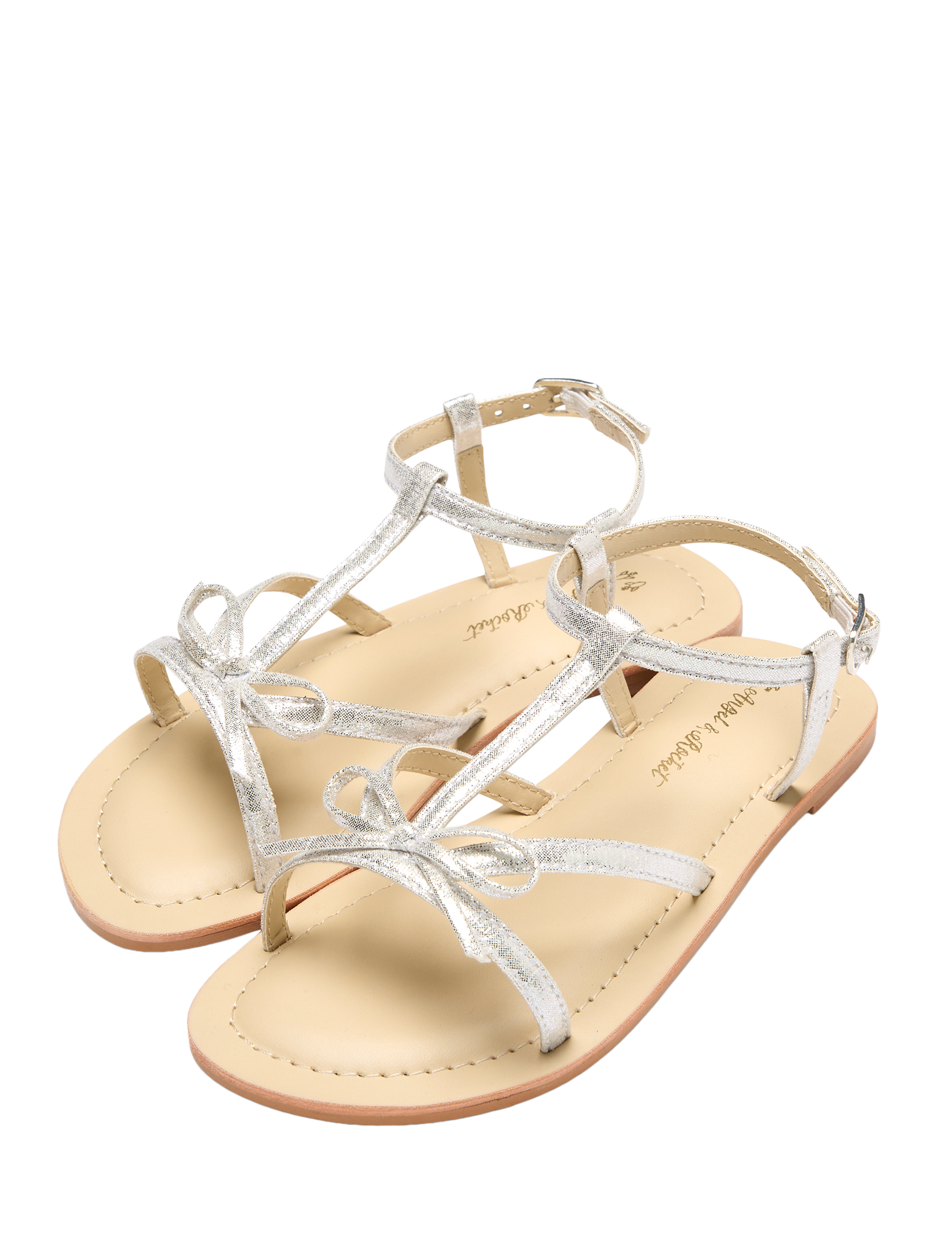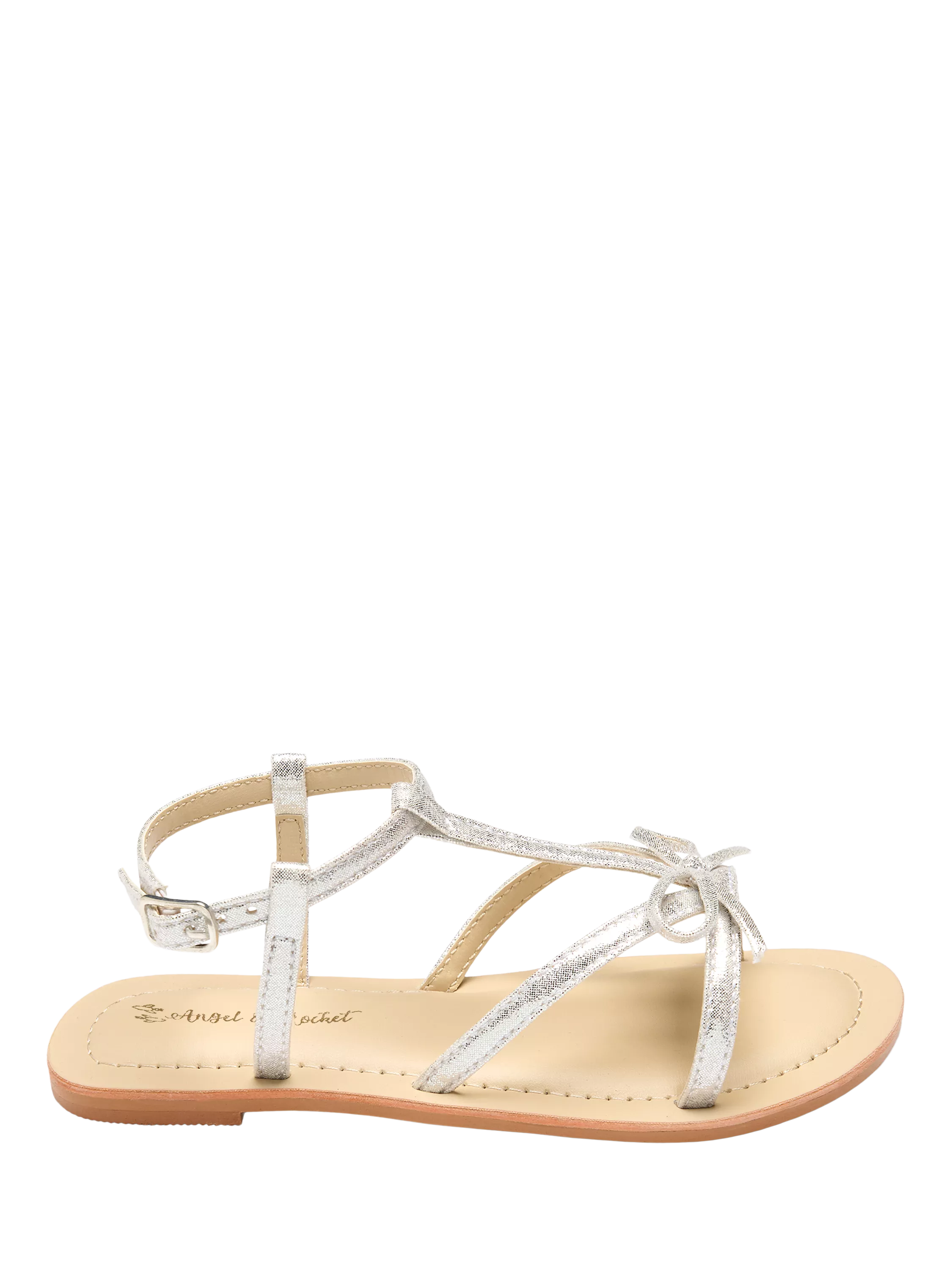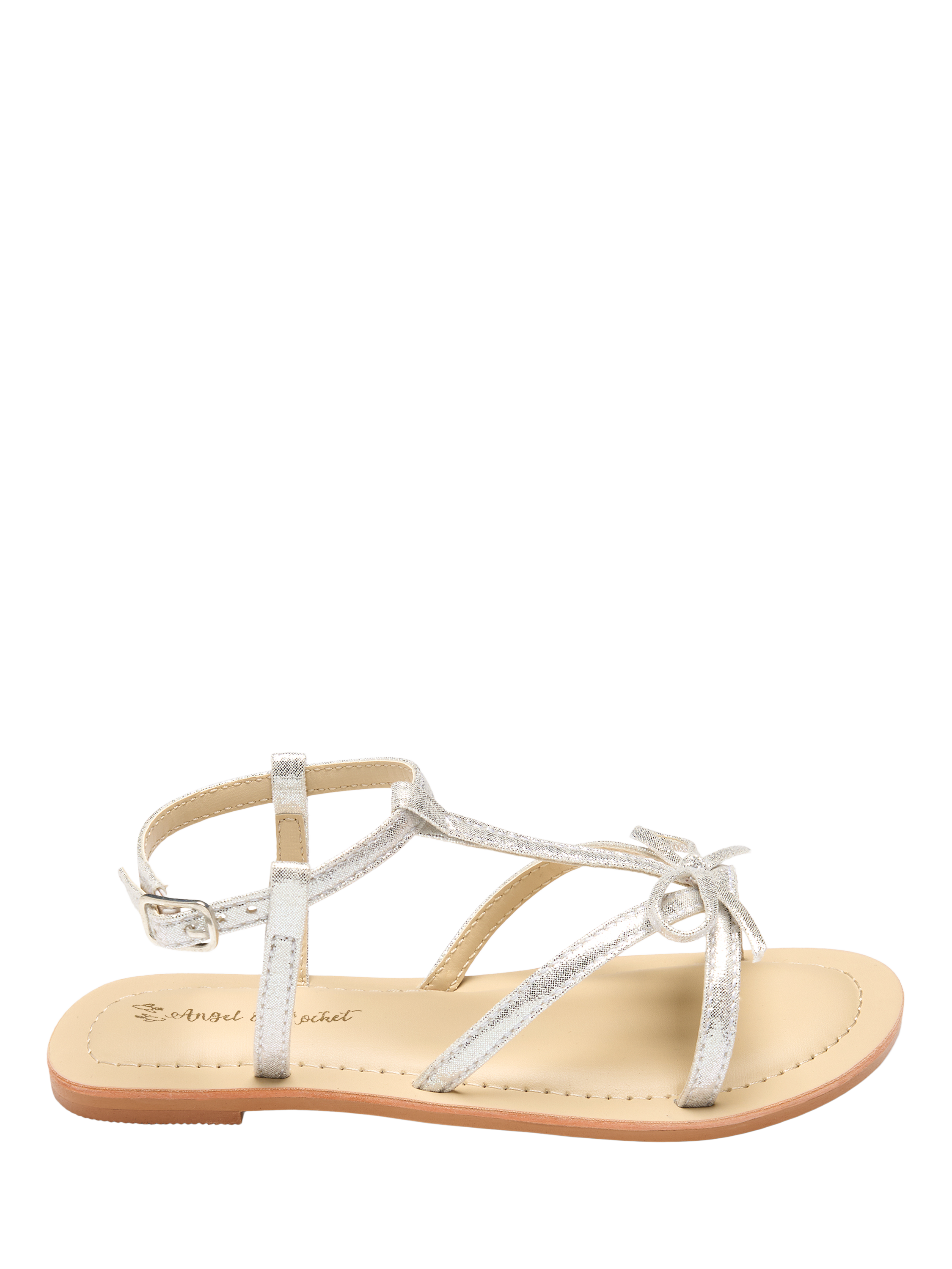 These sweet sandals shine with soft silver straps and an easy, comfy fit that’s ready for sunny days and special moments alike. Light, fun, and full of holiday charm.