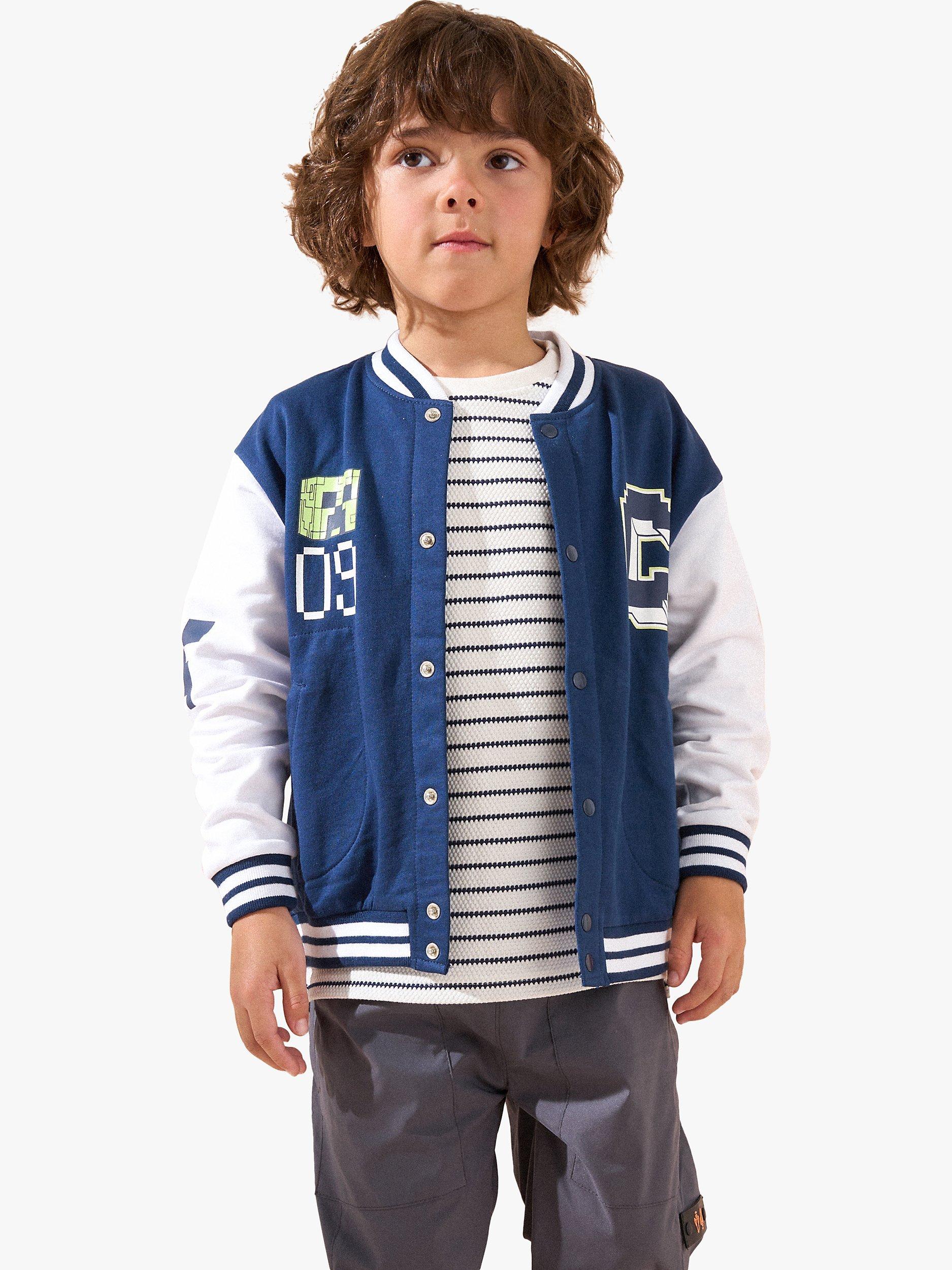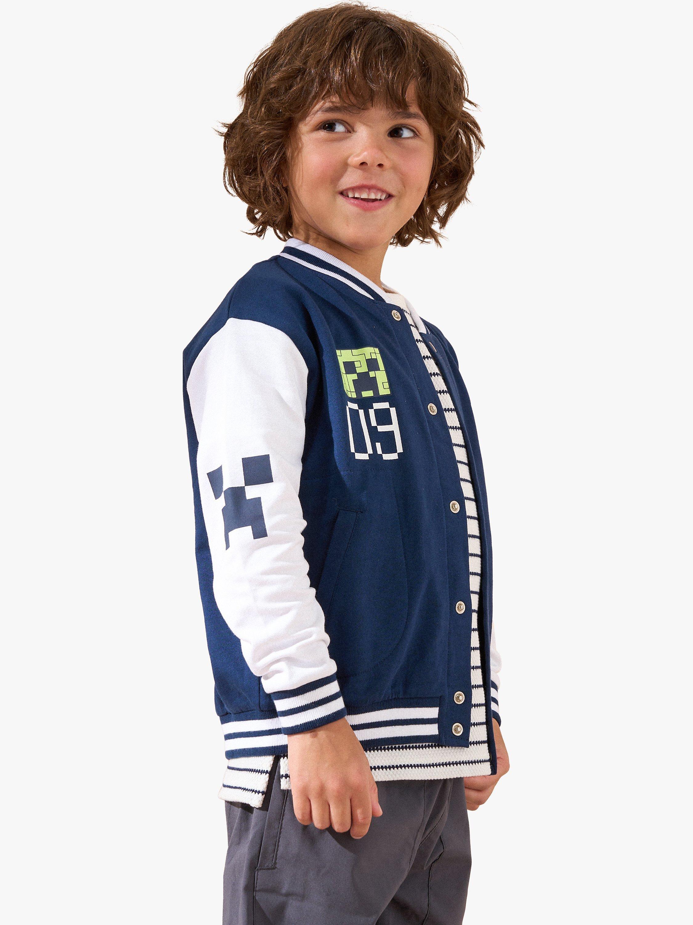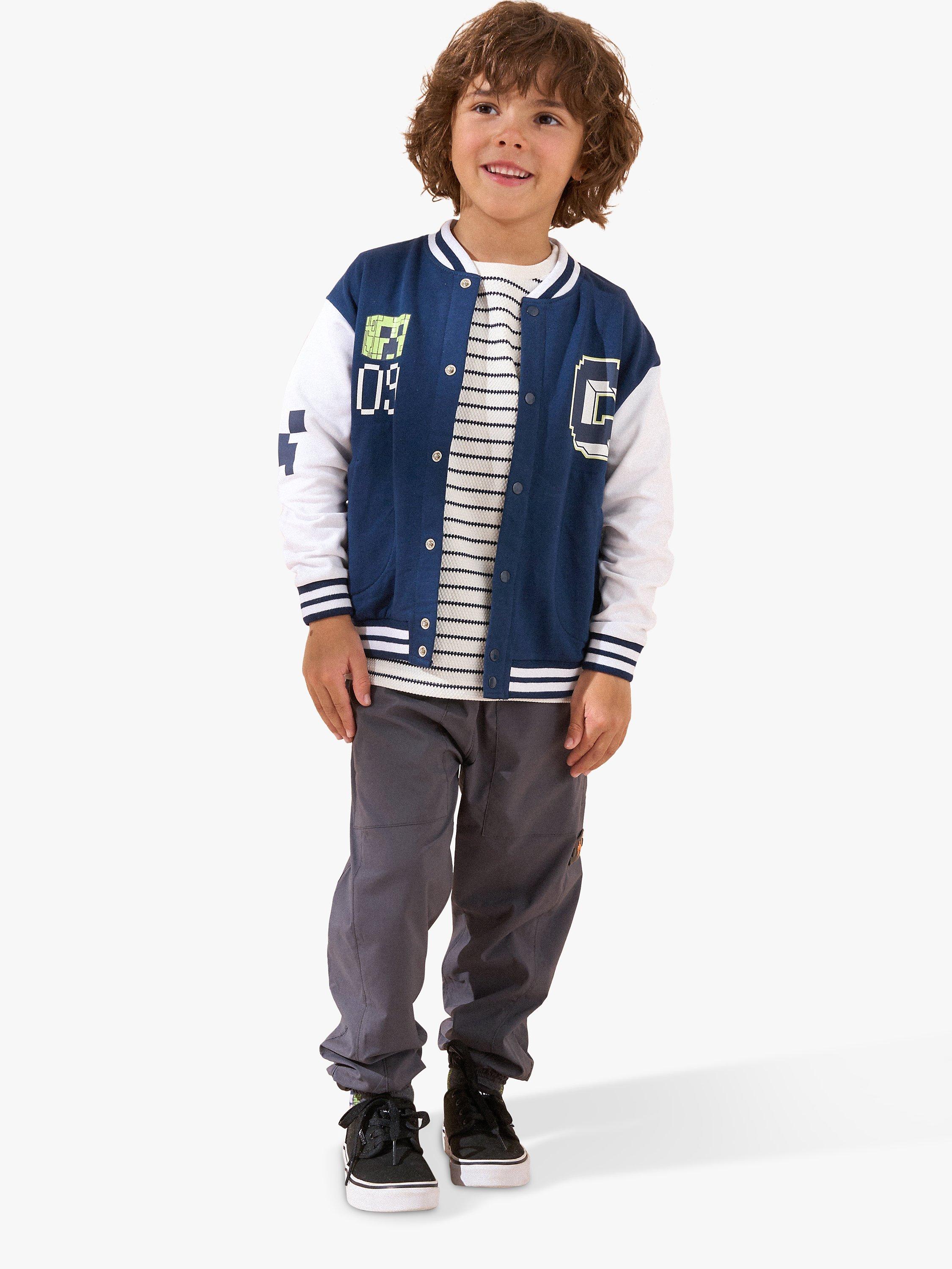Angel & RocketKids' Minecraft Colour Block Varsity Jacket, Navy/Multi