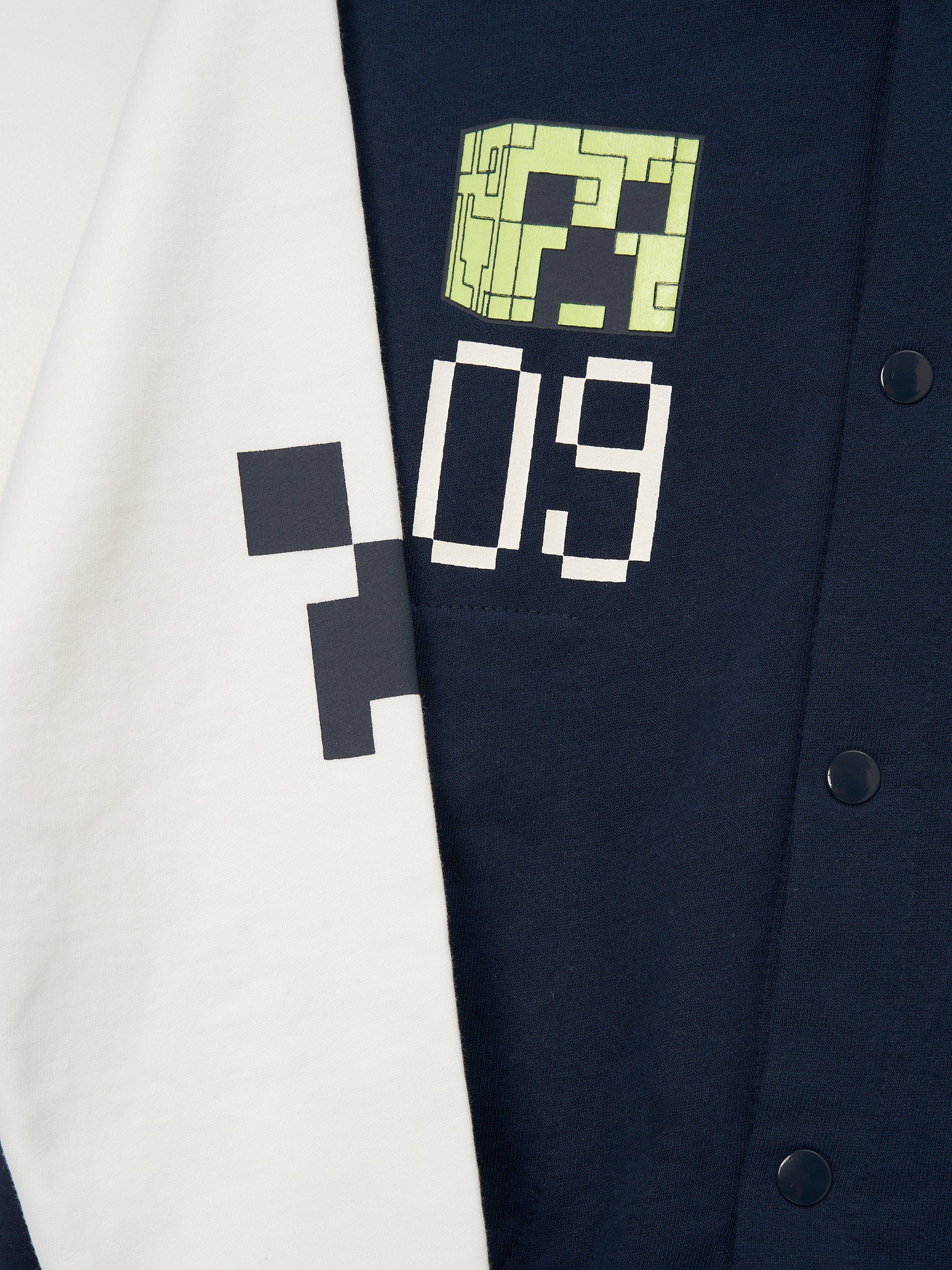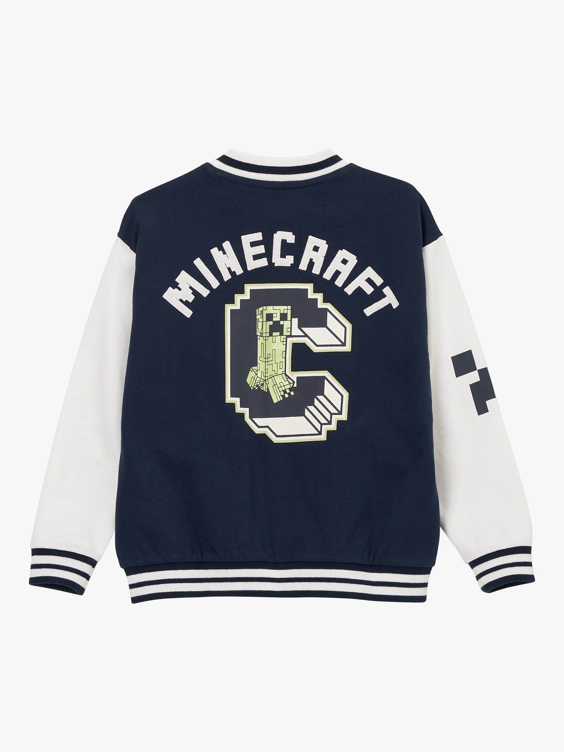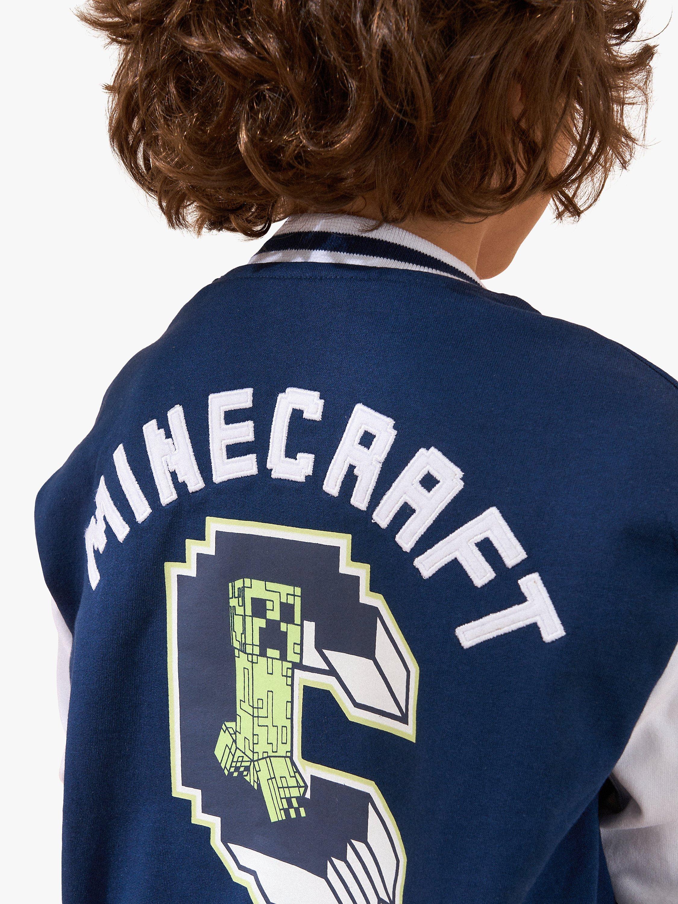 You'll be the coolest kid in the mob with this colour block Minecraft bomber. Crafted from super soft cotton jersey, it features epic Creeper graphics varsity style.