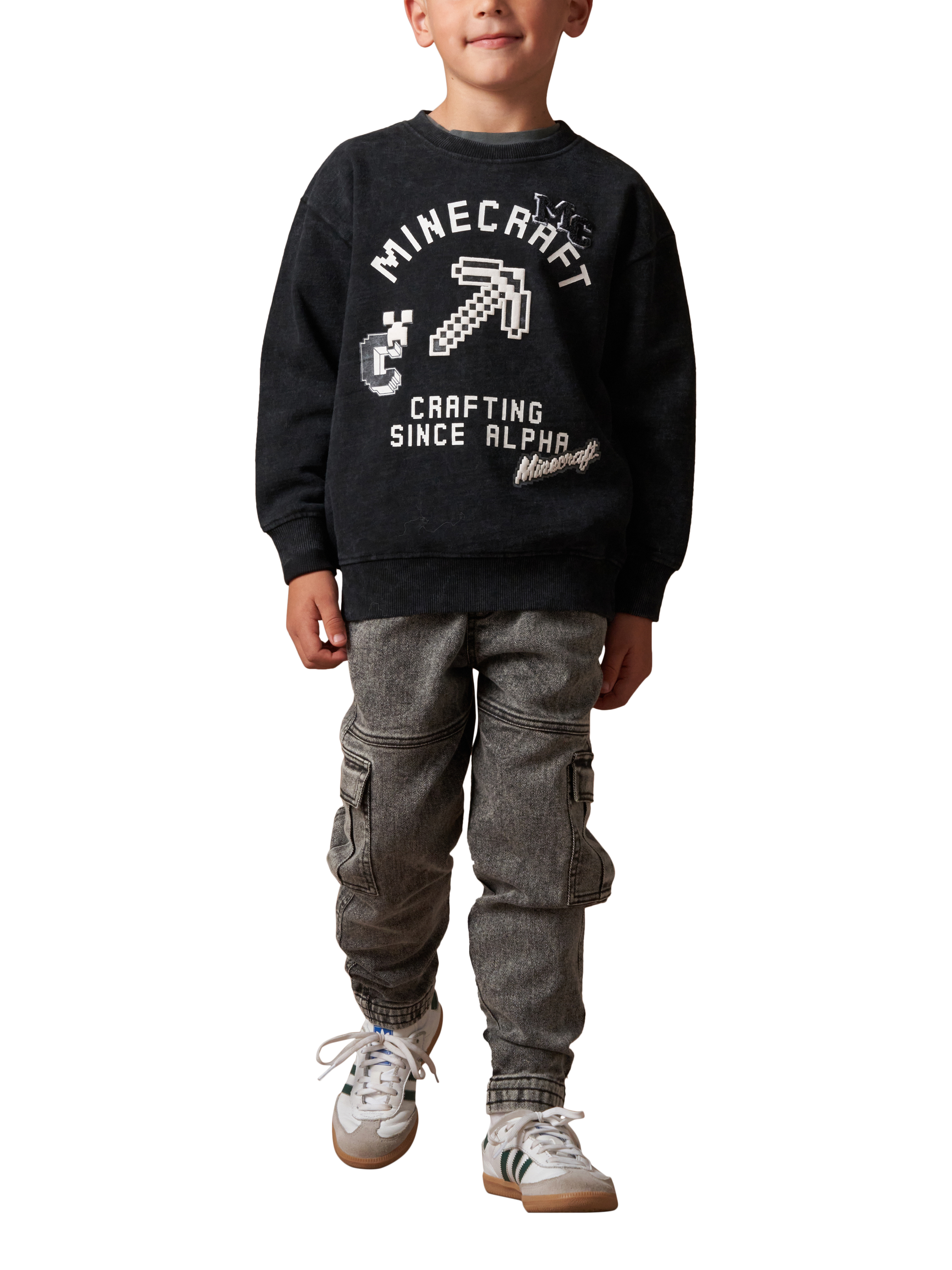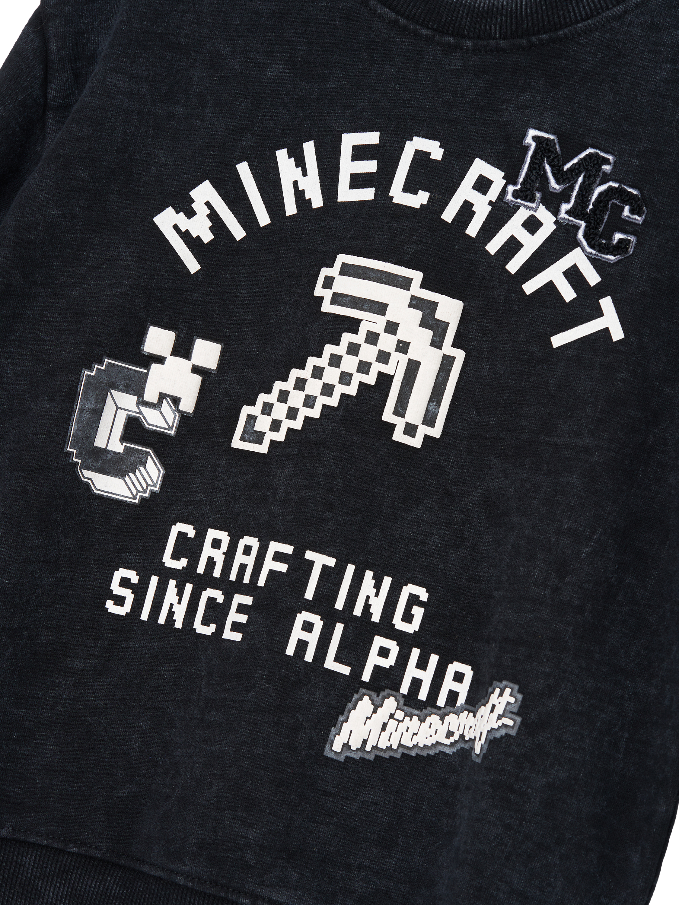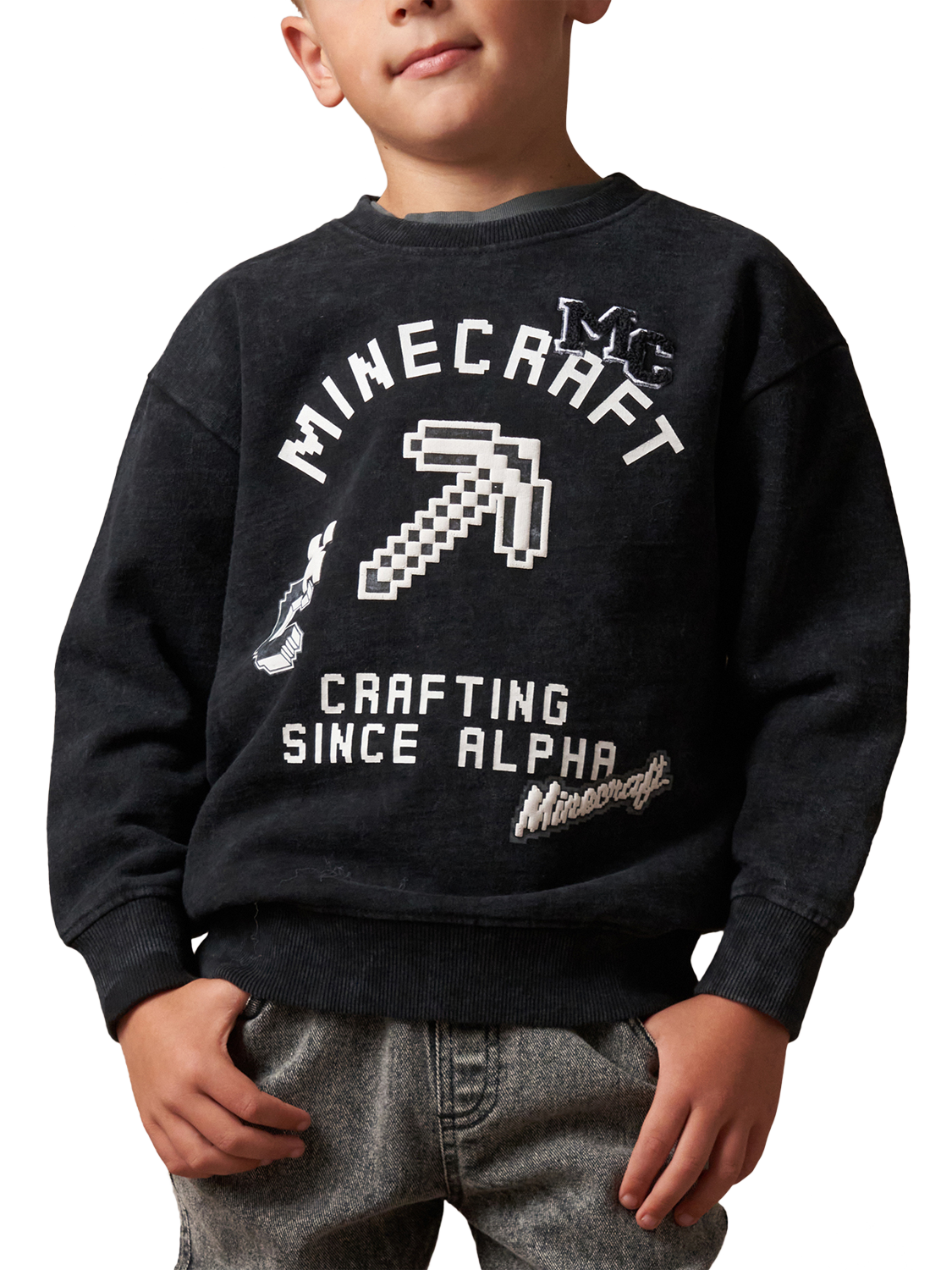 Part of a collaboration between Minecraft and Angel & Rocket, this super-soft Minecraft-branded sweatshirt is crafted from a cotton blend. It's washed for authenticity and features out-of-this-world graphic details on the front.