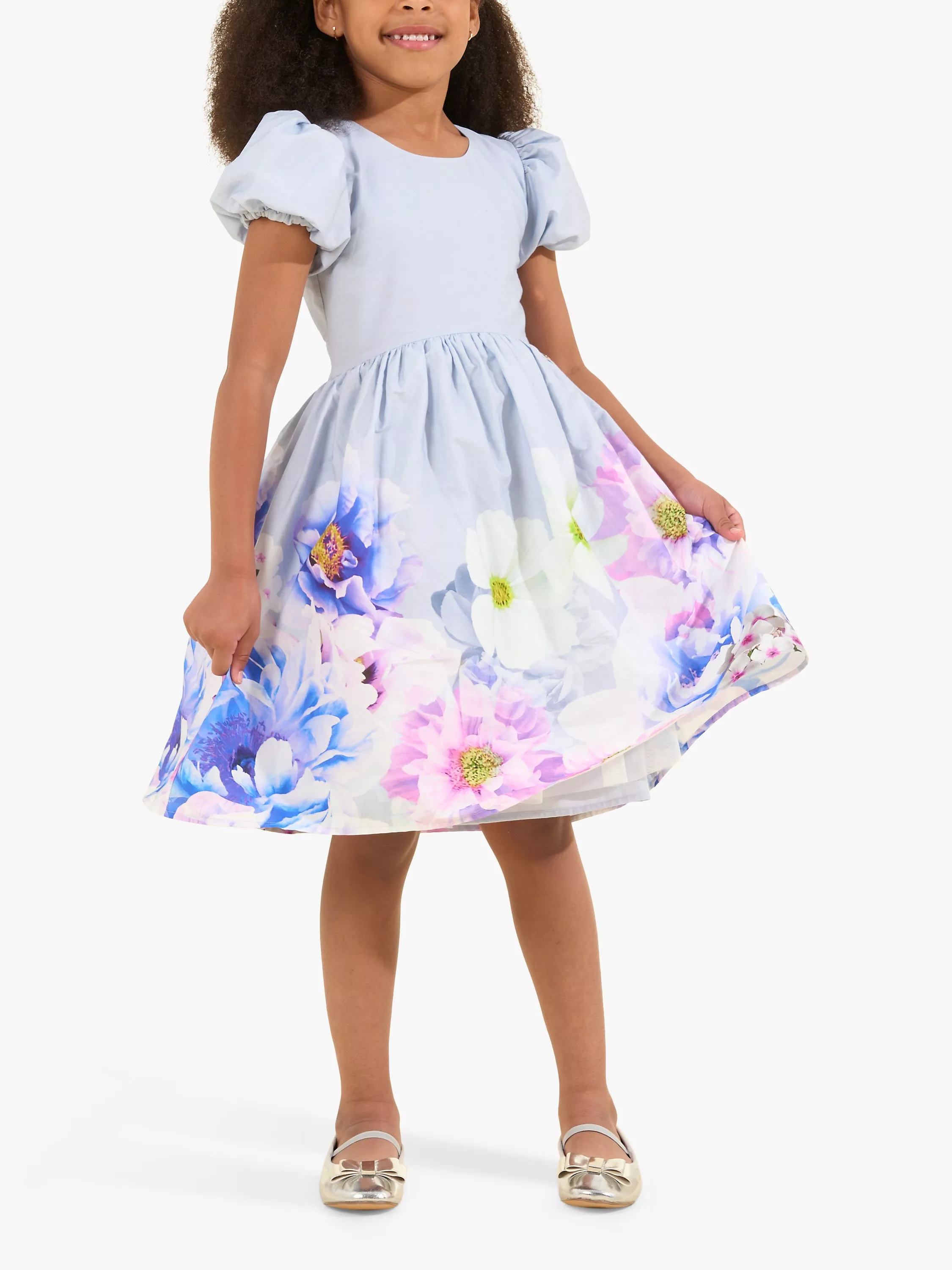 In a classic design and crafted from polished cotton sateen fabric this puff sleeve dress showcases an exquisite oversized bloom print.