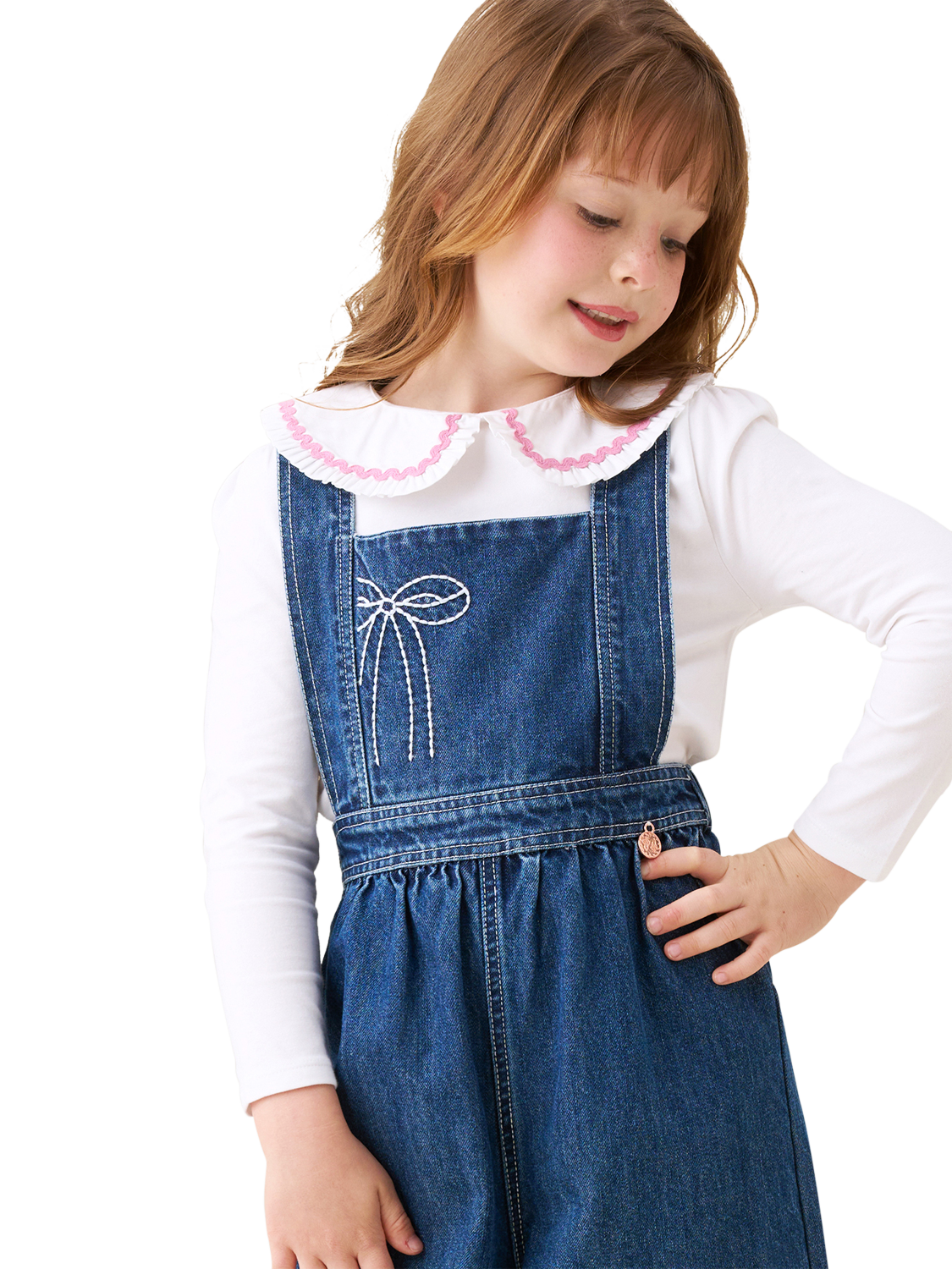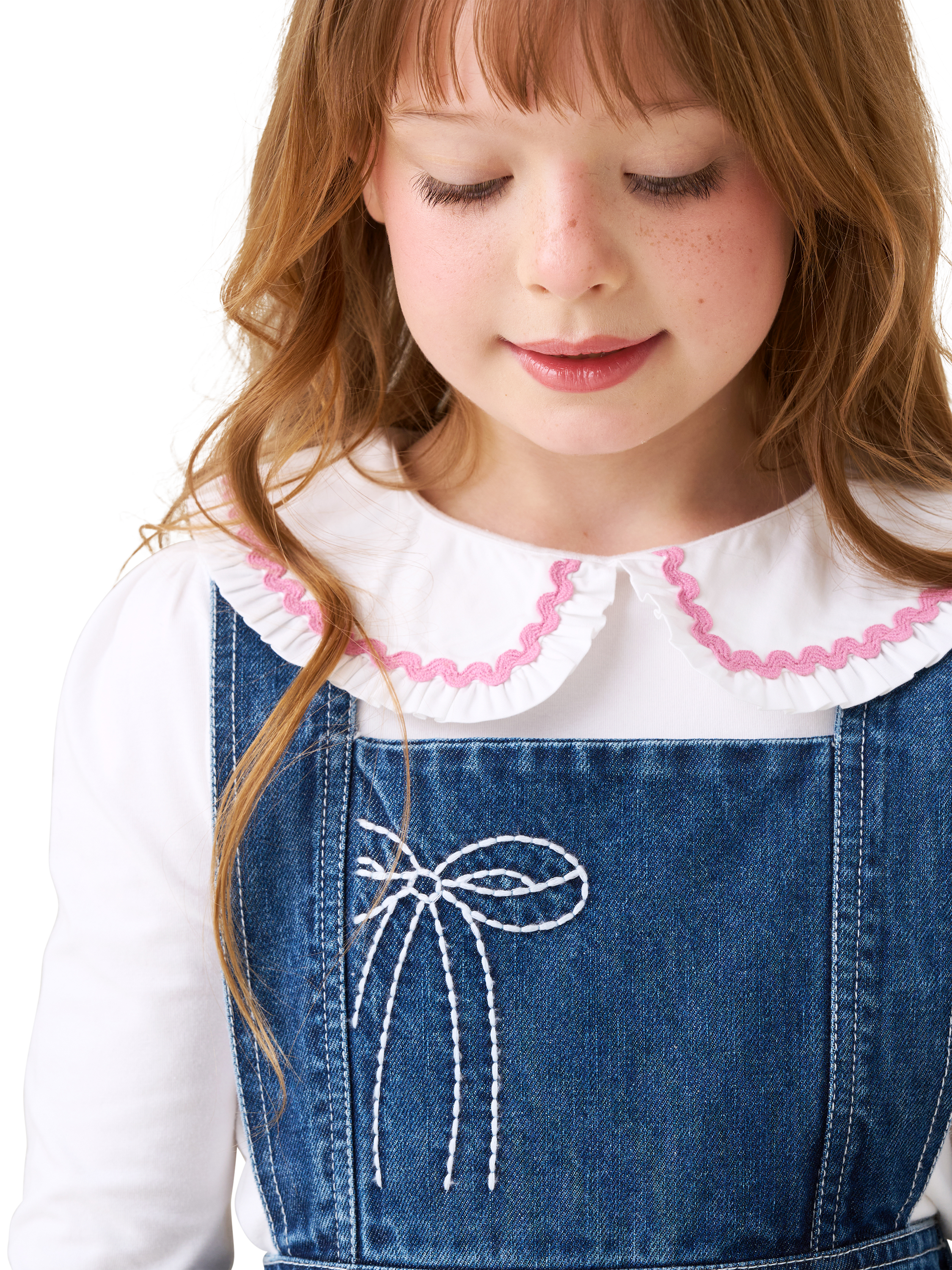 Stylish meets playful with this crisp white statement collar top, featuring frill detail and contrast ric-rac trim. Pair it with our denim dungarees for an effortlessly cool vibe that’s sure to turn heads this season!