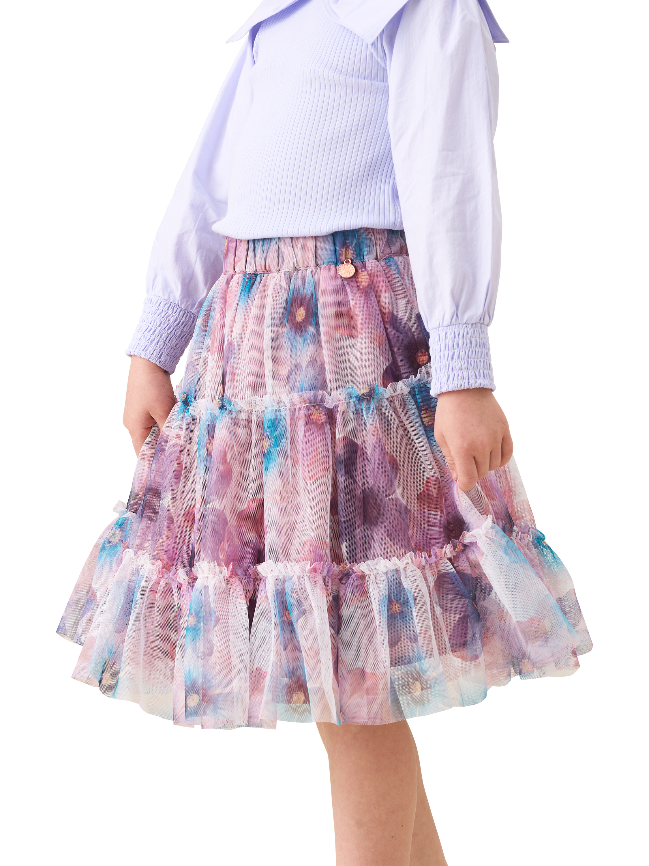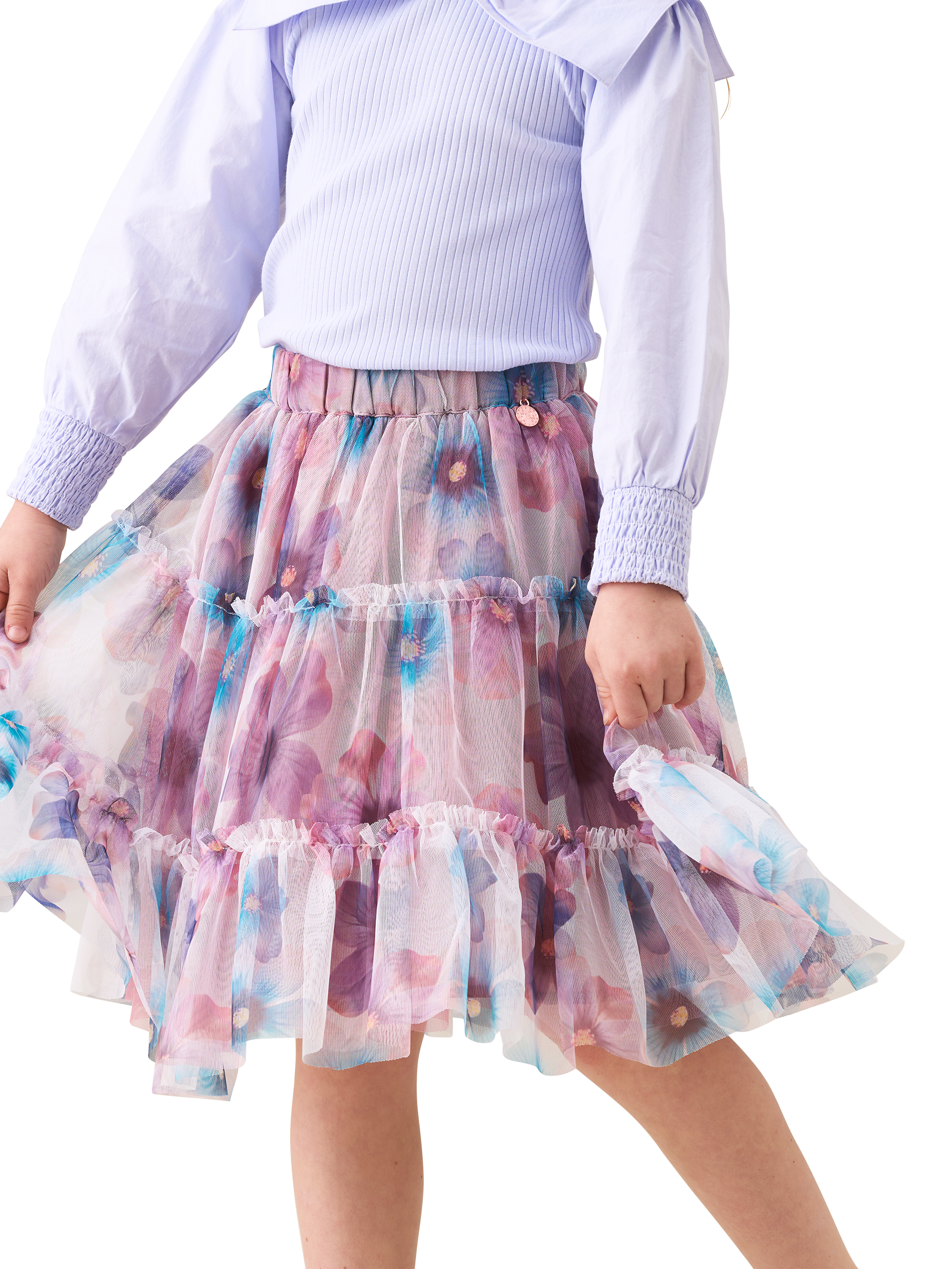 Featuring layers of the softest mesh scattered with oversized blooms, this skirt from Angel & Rocket is cut into a stunning, longer-line silhouette that's brimming with volume and tiers. Designed with an elasticated waist.