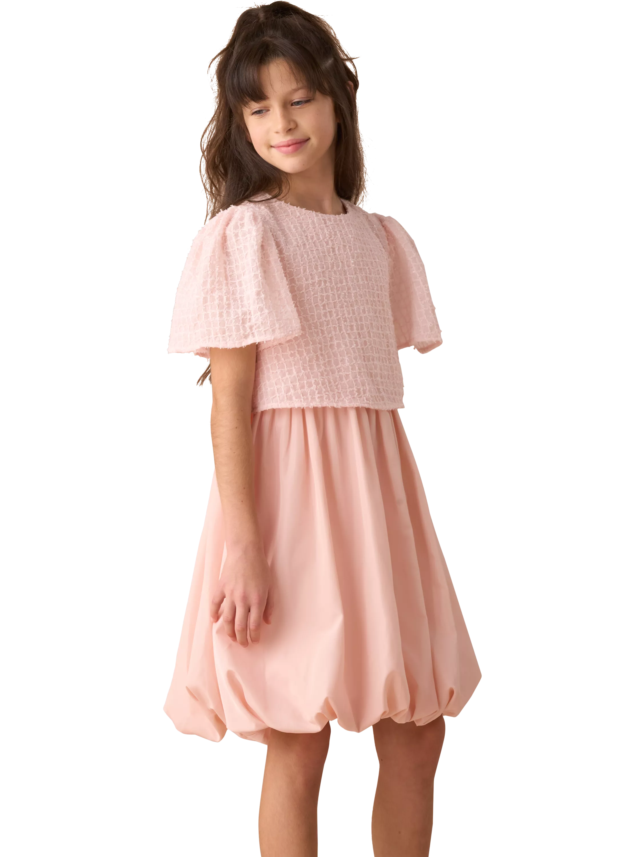 The perfect combination of playful and chic, this bubble hem dress is cut into a voluminous silhouette with a puffball hem in a delicate cut jaquard fabric. Woven with lurex to add that all-important extra sparkle!