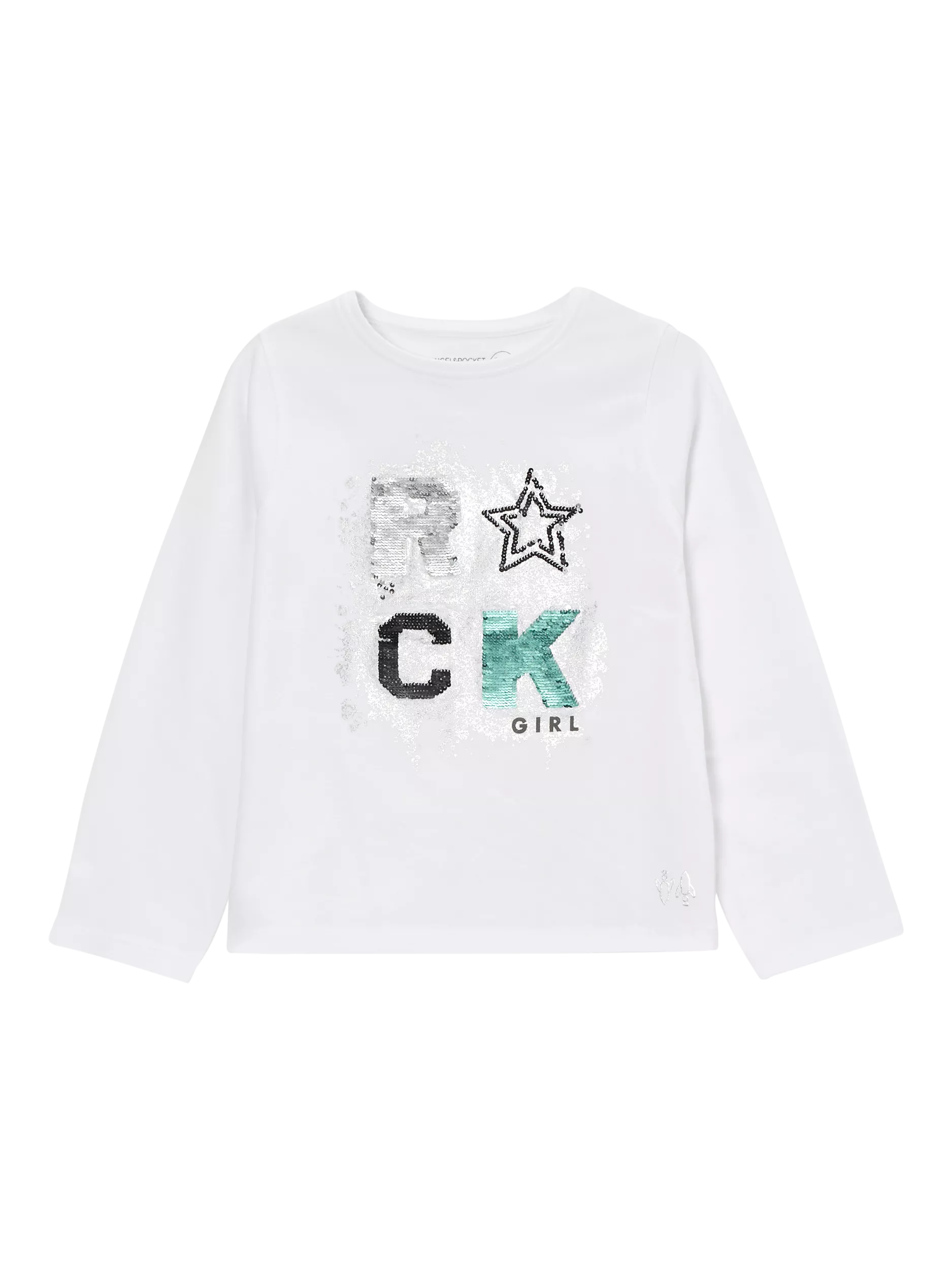 This long sleeve top ROCKS! Crafted from super soft cotton jersey featuring a sequin embellished slogan, this top will take you through the seasons. Looks even more fabulous when paired with our sequin skirt.