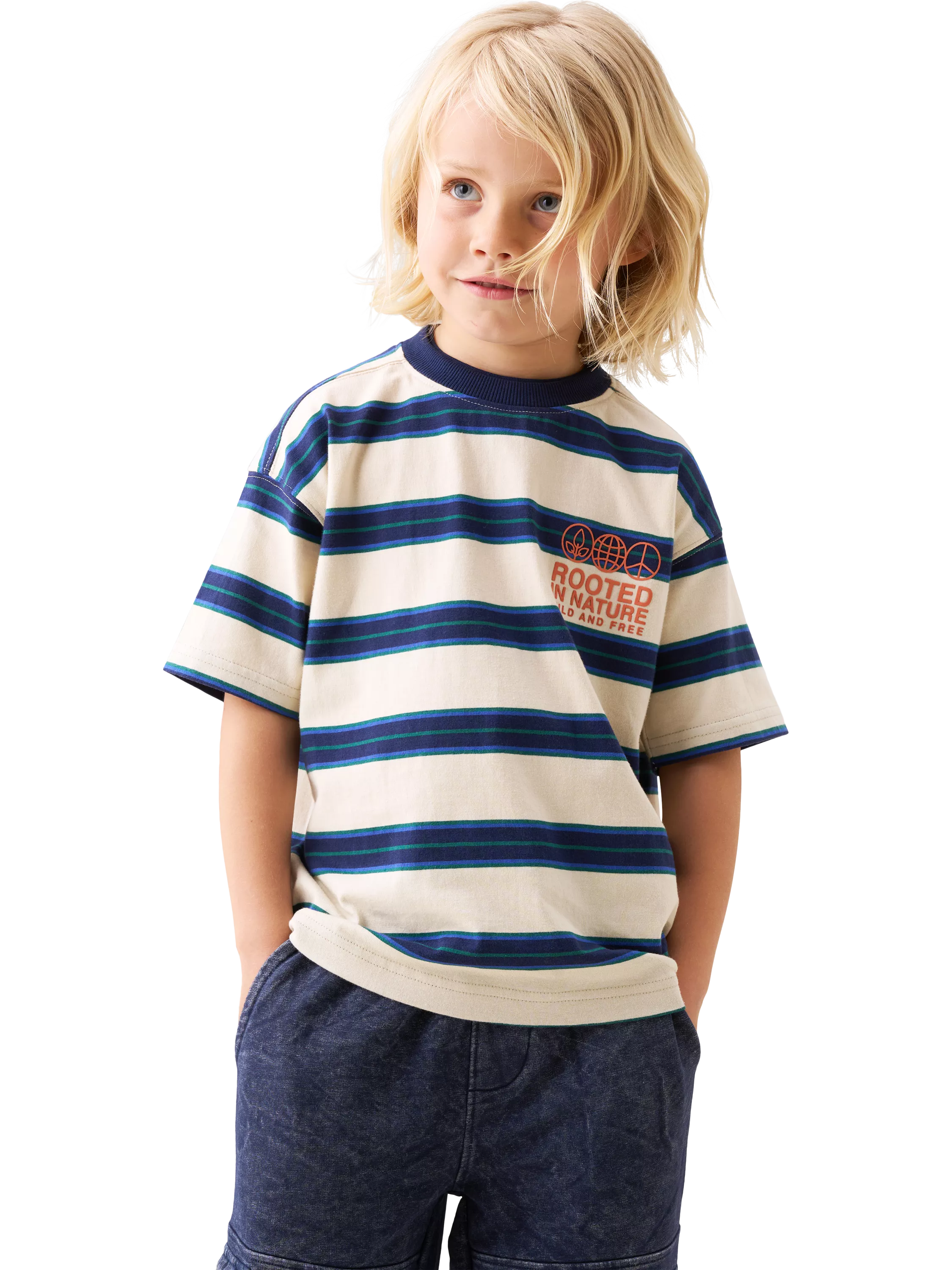 Angel & RocketKids' Stripe T-Shirt, Stone