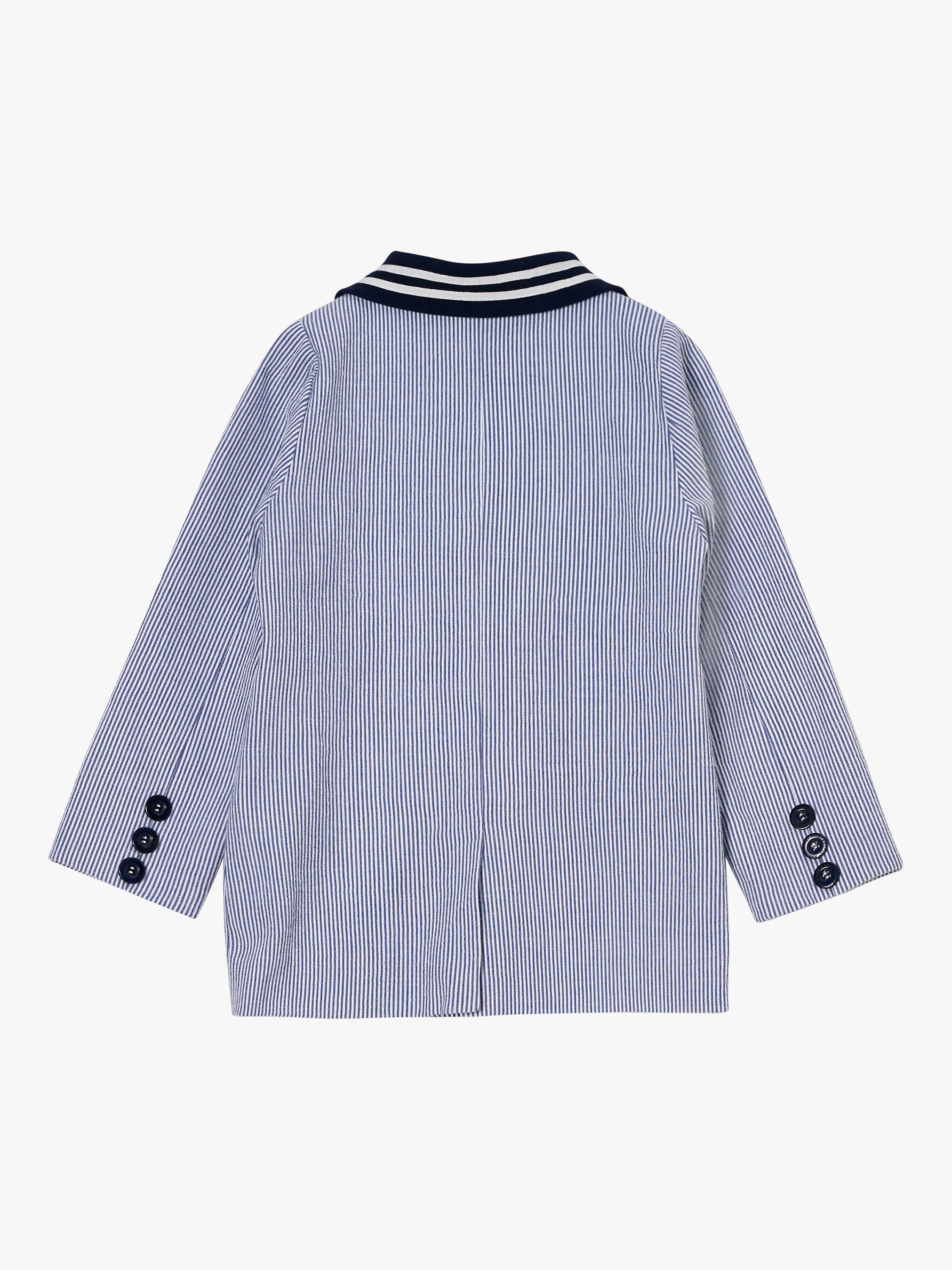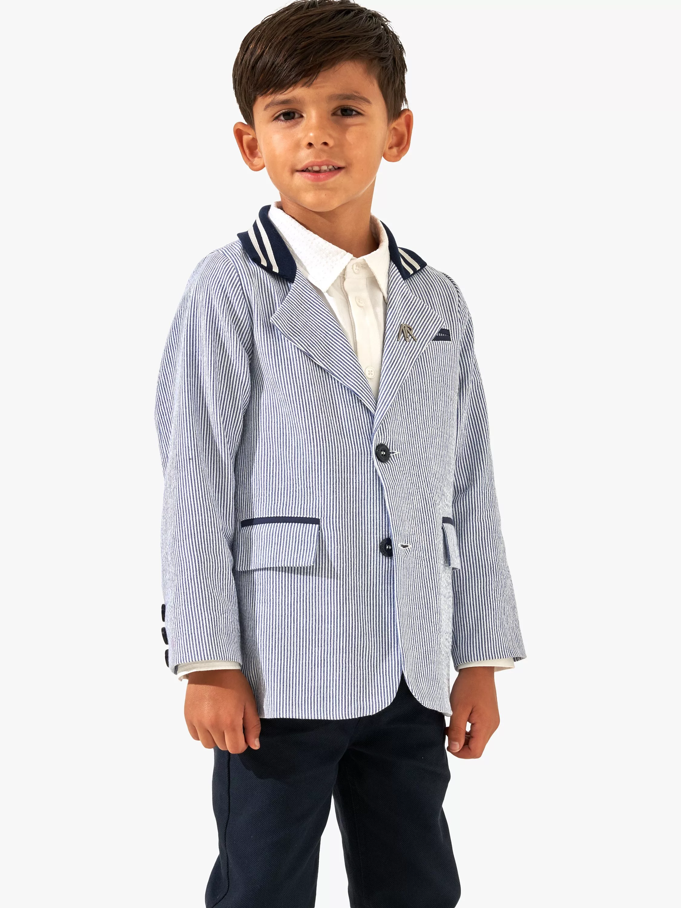 Smart dressing A&R style. This single breasted tailored blazer set is crafted from textured stripe and features a stripe detail collar and branded lapel. Paired perfectly with a crisp cotton shirt and tie. Your outfit is all wrapped up and ready to go!