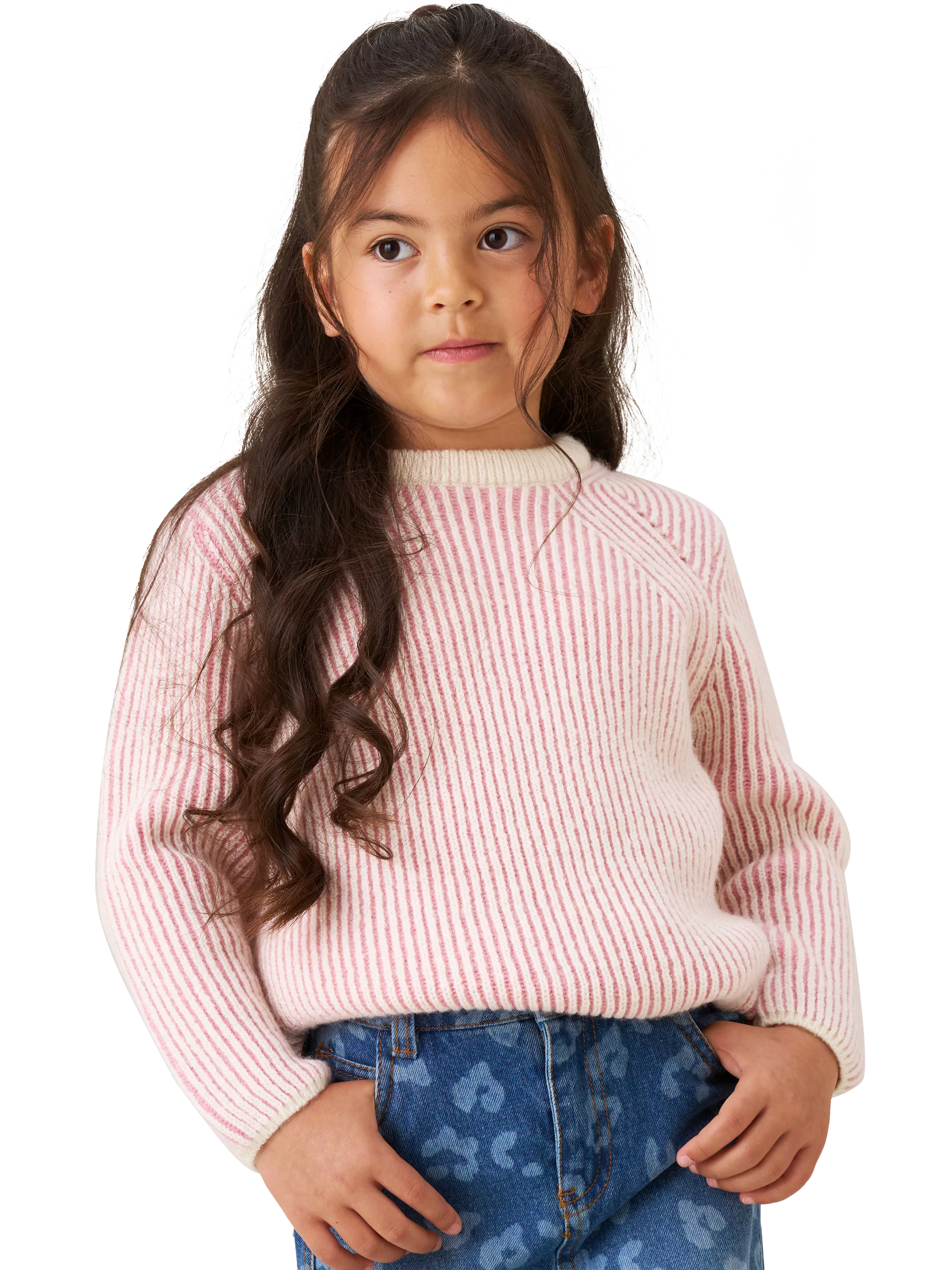Angel & RocketKids' Wool Blend Textured Stripe Jumper, Pink