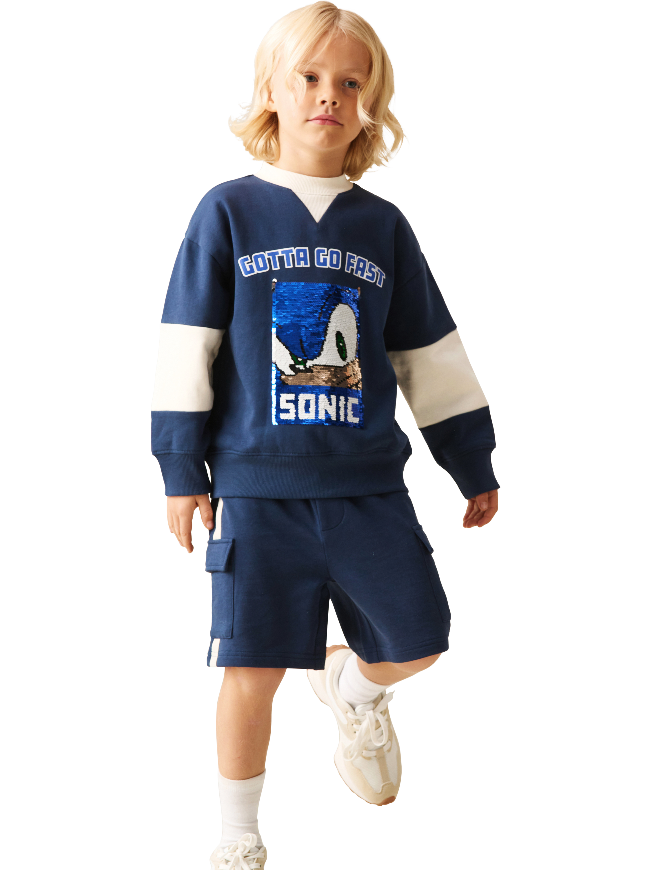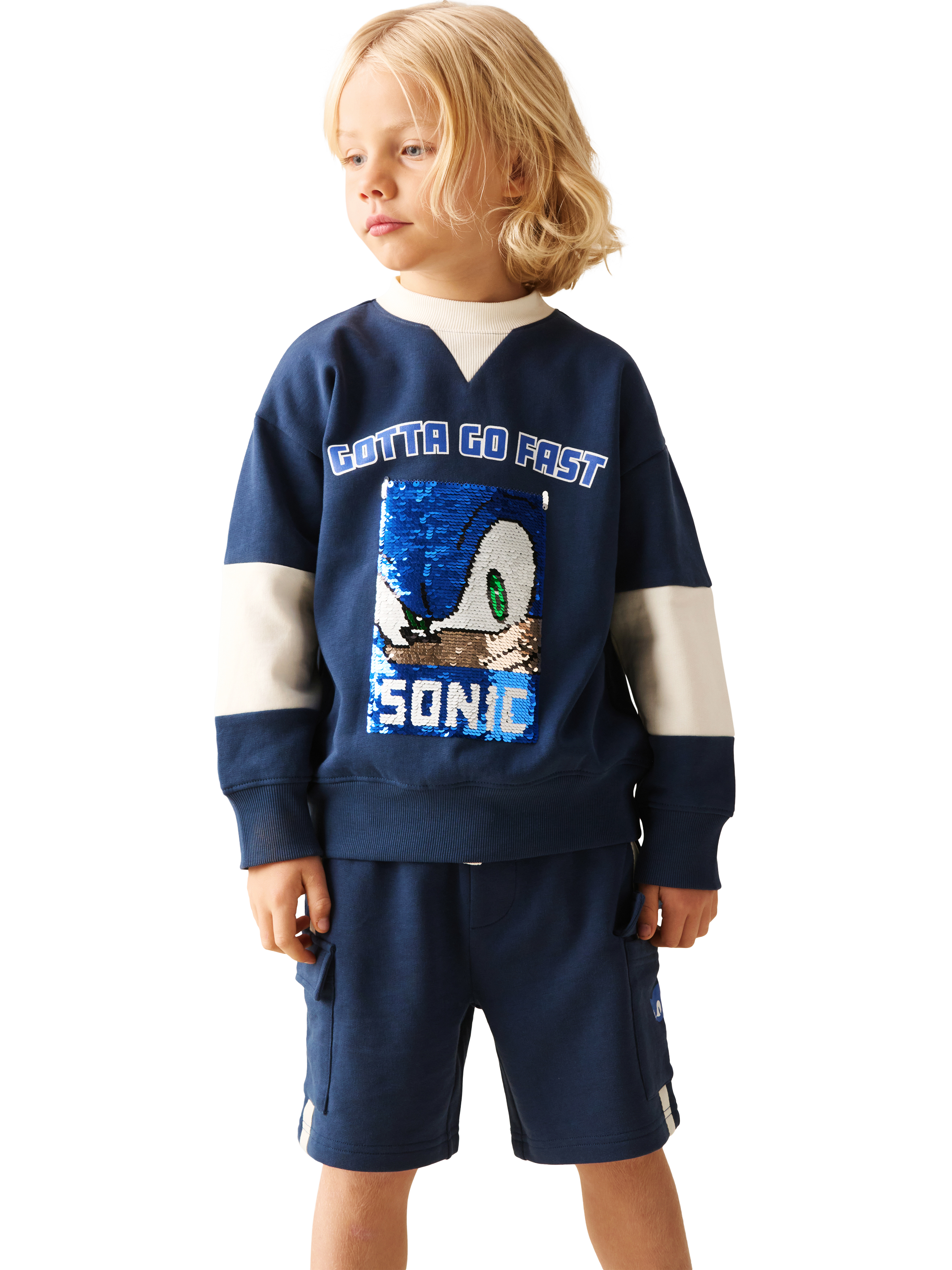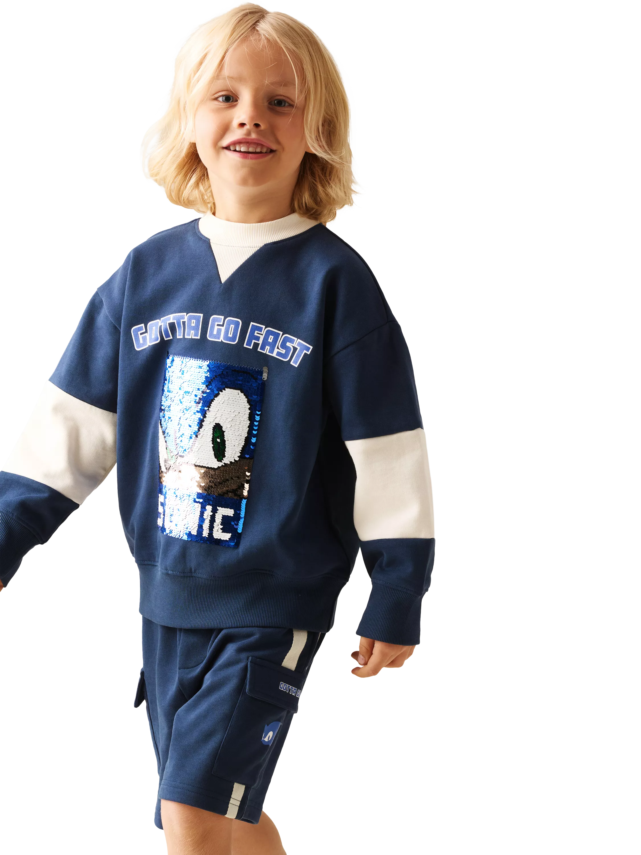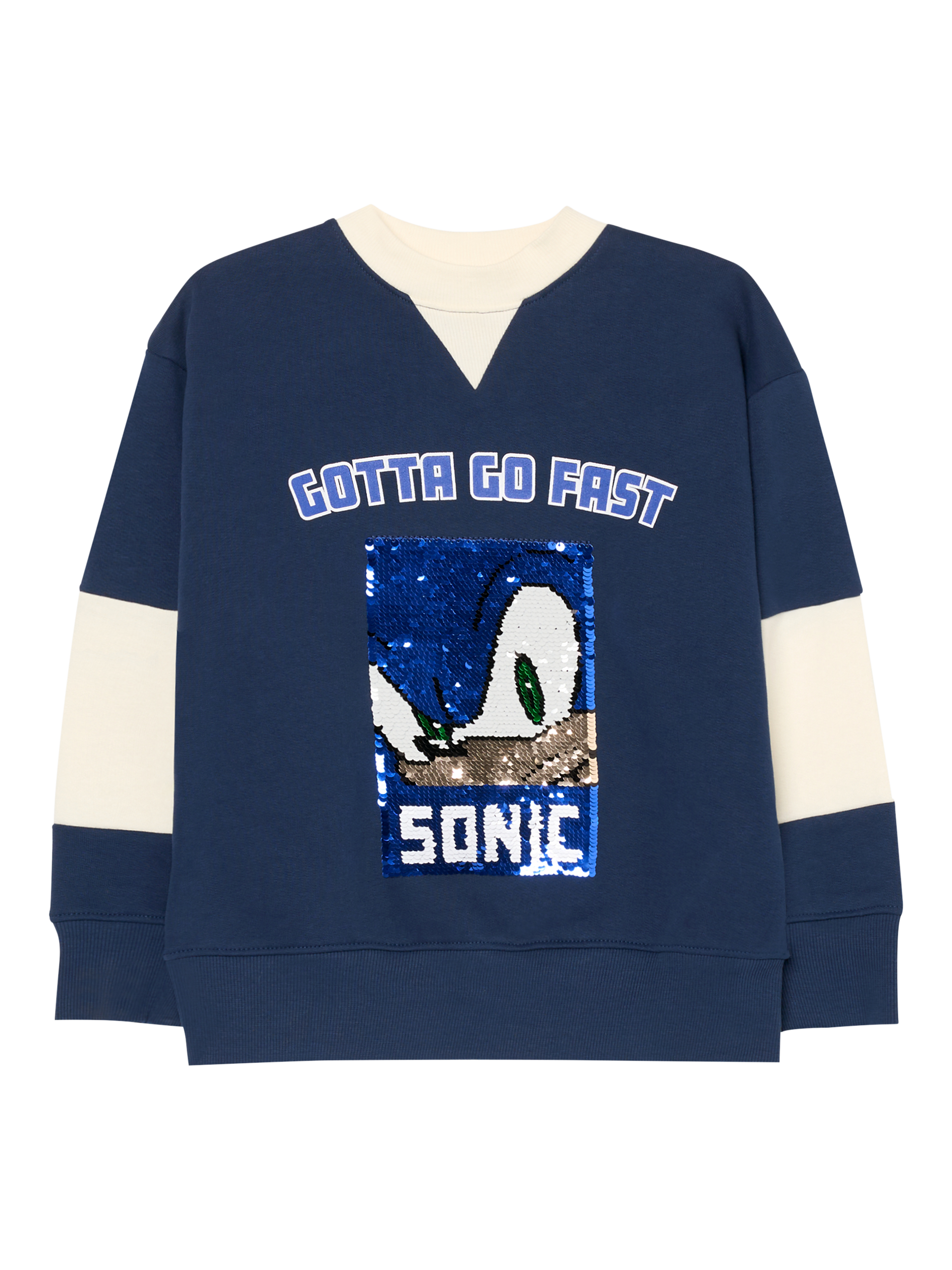 Game on! Level up their look in our Sonic x A&R varsity flip sequin sweat, crafted in soft cotton jersey with bold cream block detailing. With its sporty feel and everyday comfort, it’s made for play, lounging, and everything in between.