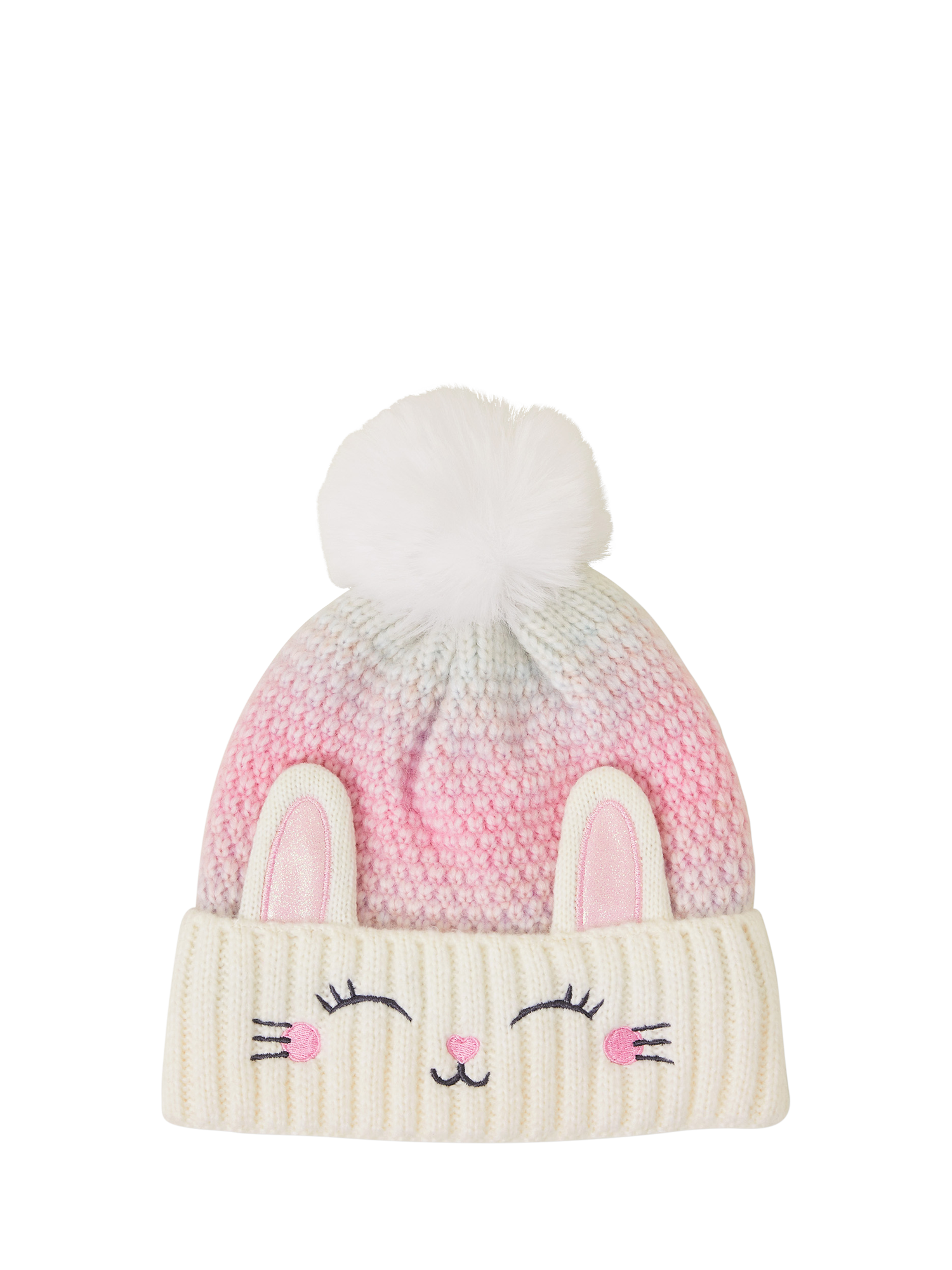 Built with a soft knit, they'll be hippedy-hopping through the snow with this hat keeping them warm. Finished with a turned up brim, faux fur pom-pom and bunny rabbit design.