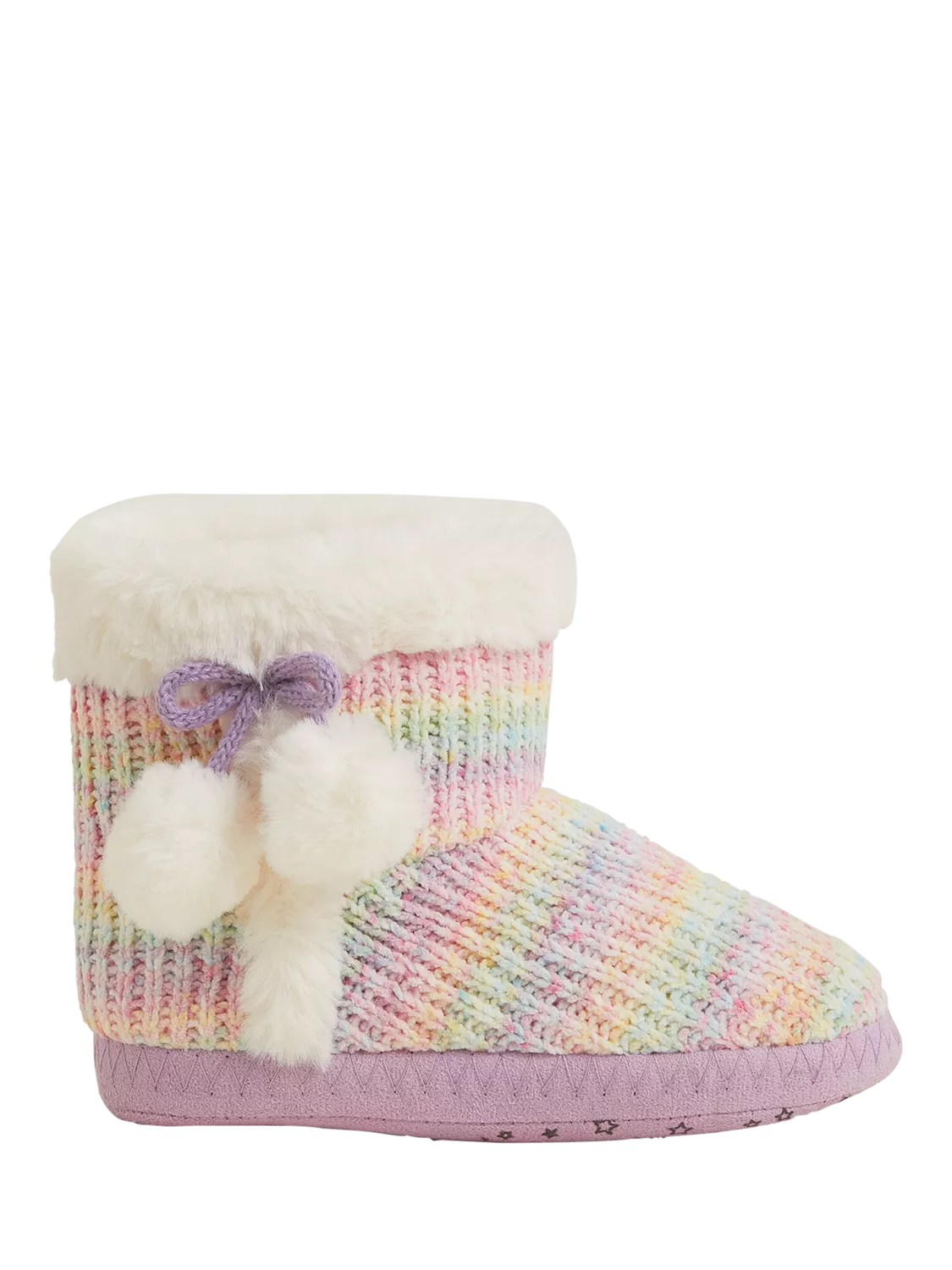 Slipper boots to wear in dreamland. Lined with super soft and fluffy faux fur, these slippers have a cosy chenille fabric to keep feet snug and warm.