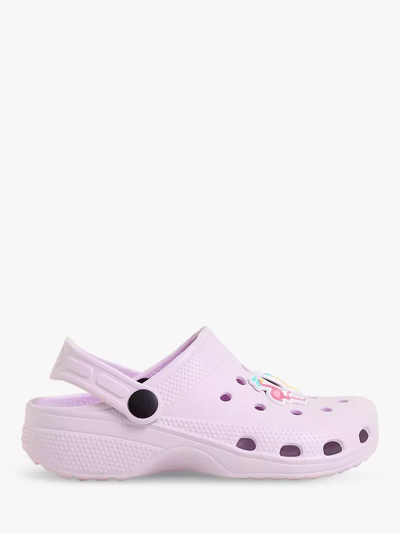 These fun summer ready clogs are designed with chunky soles and breathable holes, finished with a back strap that can be secured around the back of the heel or pushed up so they're easy to slide on-and-off. The charms can be easily removed or pinned in different places allowing the design to be changed.