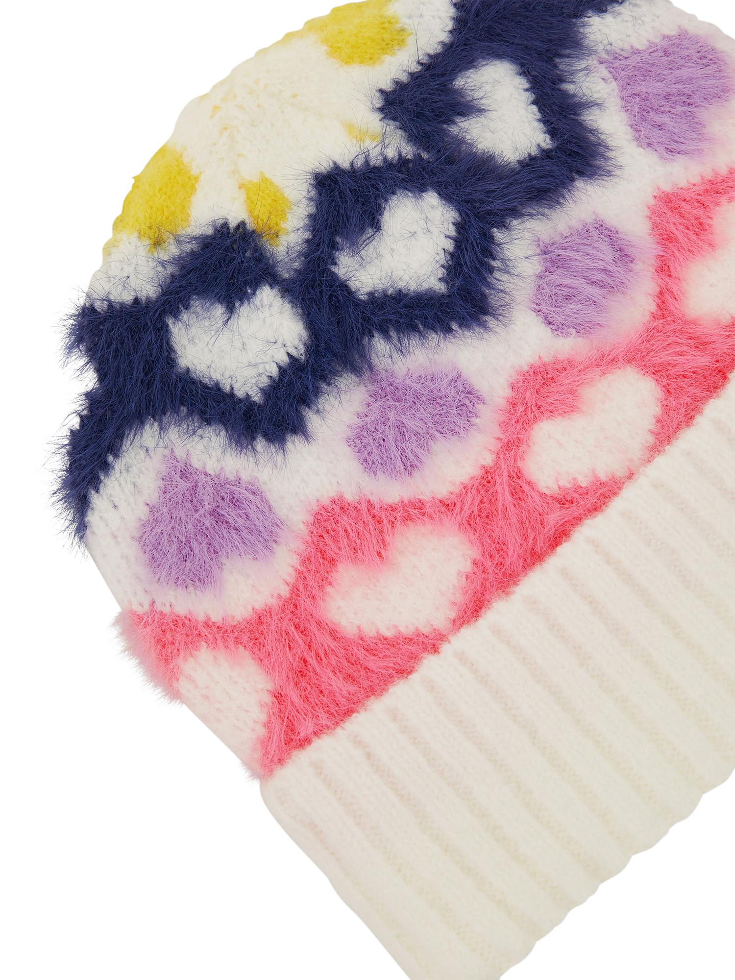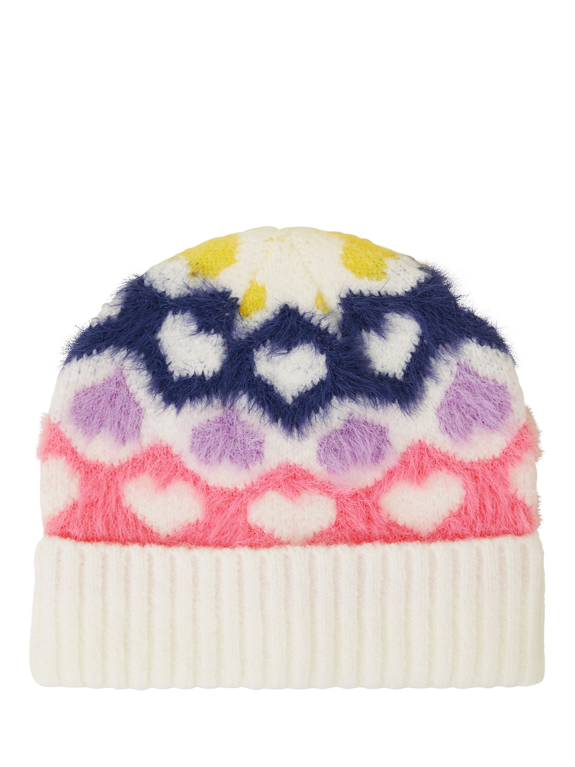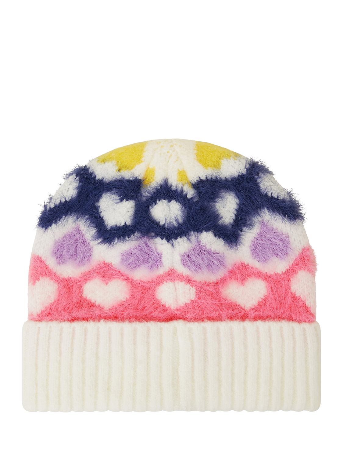 Stitched with soft, fluffy yarns in a mix of vibrant colours, this beanie is a love-ly addition to their winter warmers.