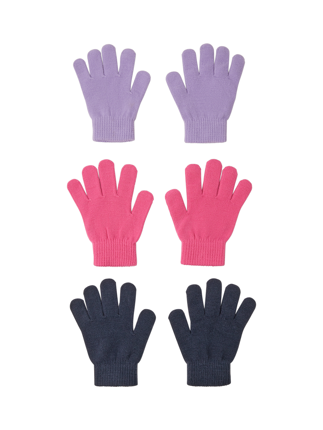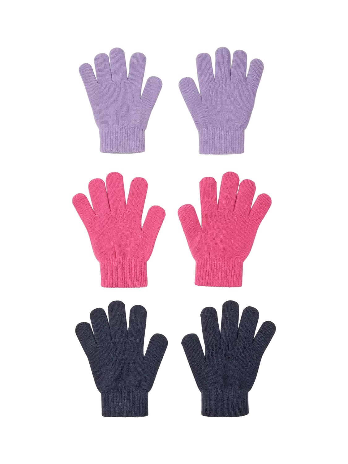 Knitted in lilac, pink and grey, this trio of comfy gloves are sure to keep their little fingers warm all winter long. Let them pick and choose the colour, depending on their mood (and outfit). Three pairs included.