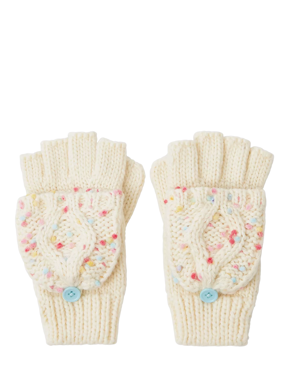 Decorated with colourful pom-poms reminiscent of ice cream sprinkles, these gloves are a fun addition to their winter warmers. Opt for the fingerless design or unbutton the mitten caps for ultimate cosiness.