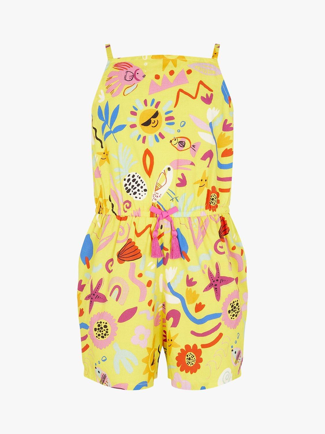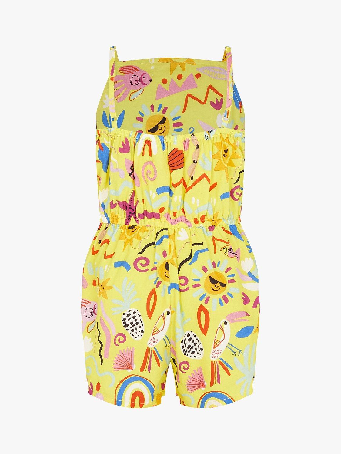 AccessorizeAngels by Accessorize Kids' Sunshine Print Cotton Playsuit, Yellow/Multi