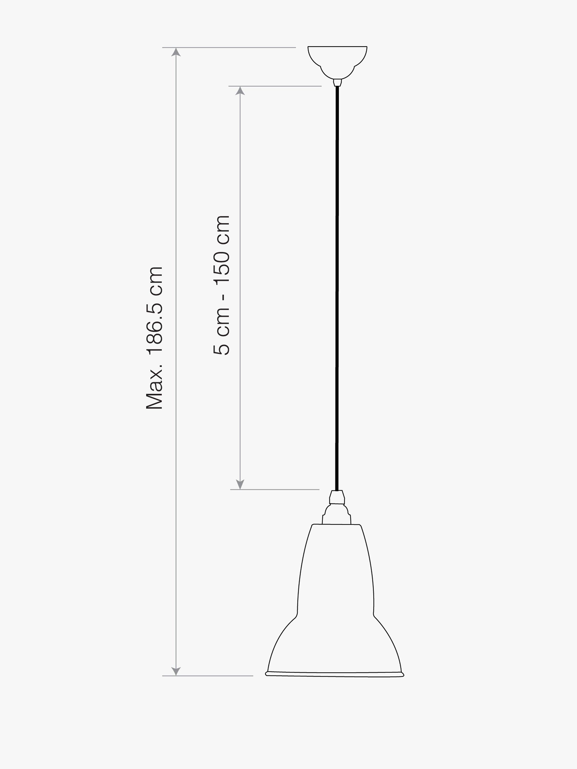 If the standard Anglepoise pendant is a little small and the maxi pendant a little over imposing for the space, then the new Midi pendant will be just right.