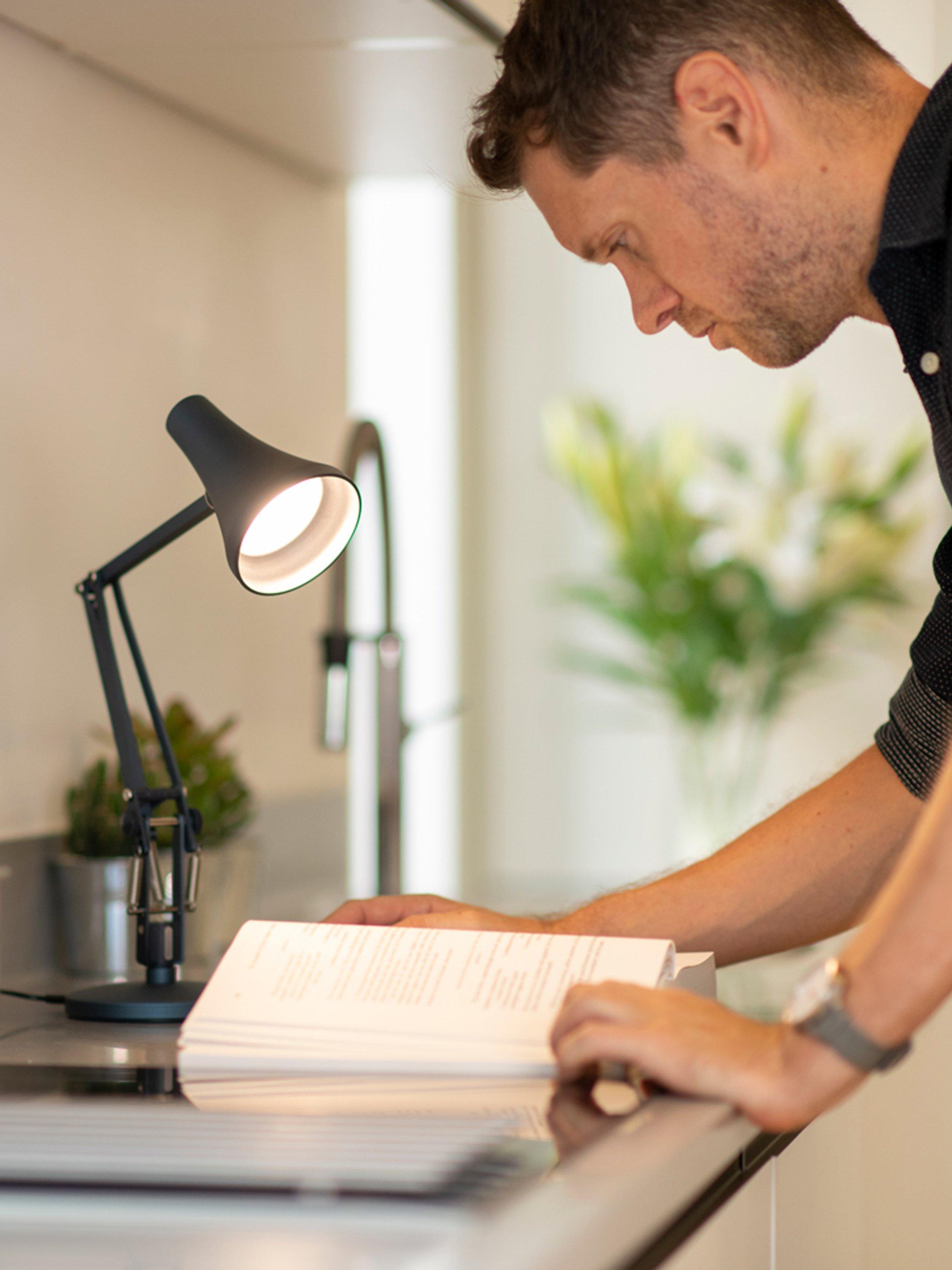 Offering the versatility and style of the timeless Anglepoise 90 model, the Mini Mini desk lamp is impressive in its petite form. A design classic, available in a selection of colours, simply tilt the shade to cast light exactly where you need it. It's powered by USB and has a powerful, dimmable integrated LED that provides a focused glow of light. Made from high-quality metals in a stain finish.