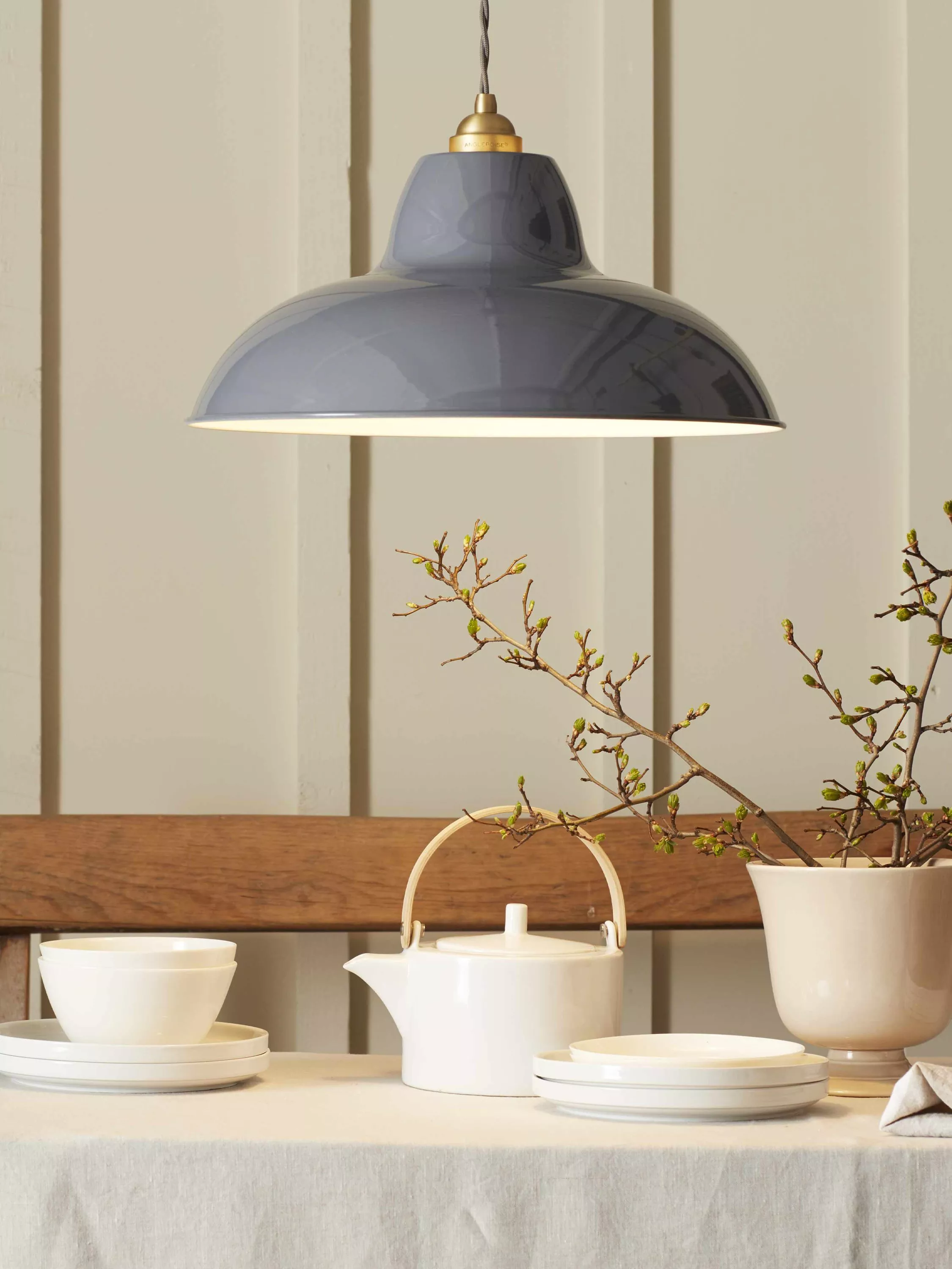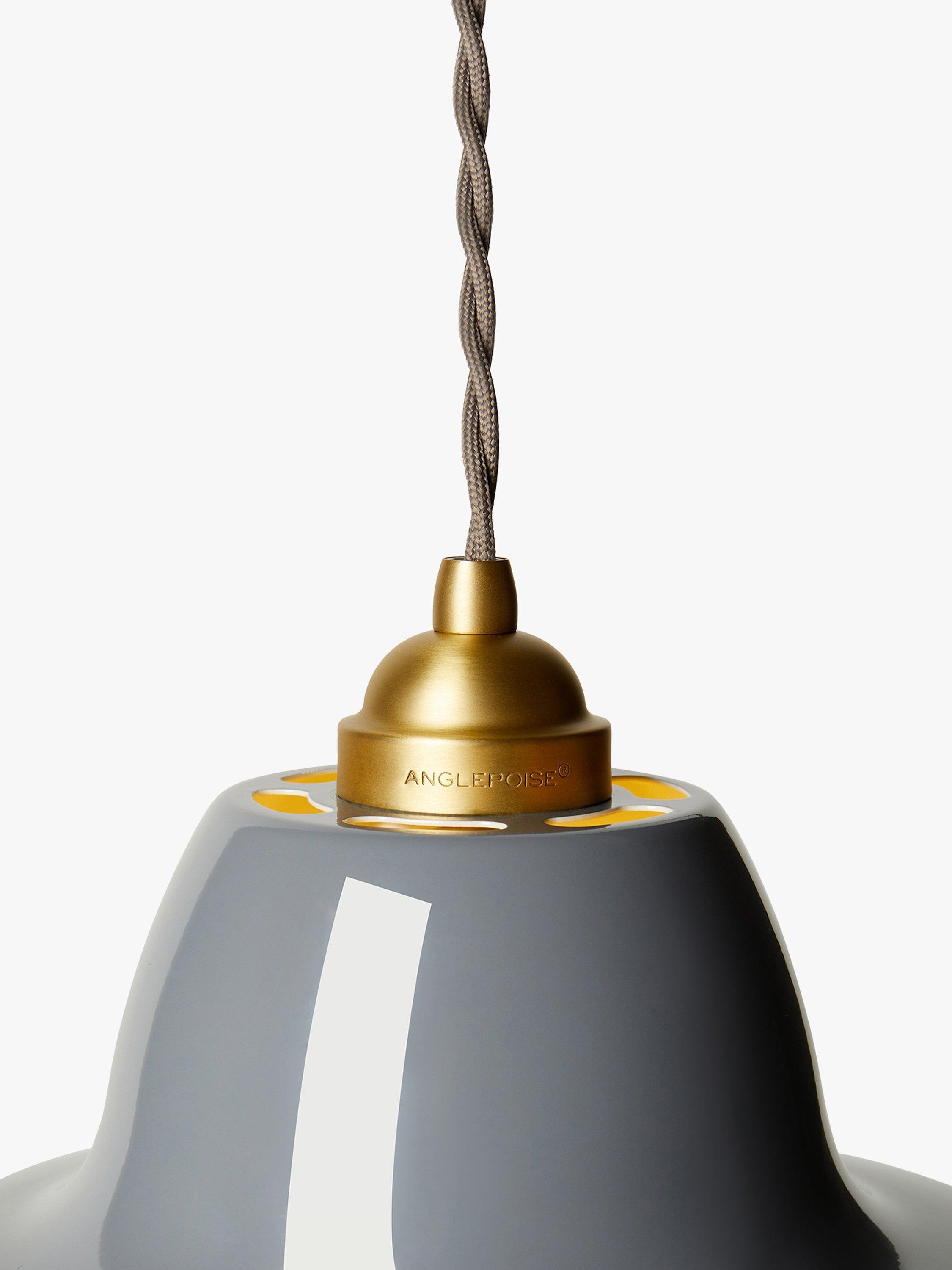 With its wider diameter and lower profile compared to standard Original 1227 pendants, this is a design first from Anglepoise. Its saucer-style shape is the perfect size and profile for making a statement above a dining table or in a kitchen. Made from high-quality metal in a high-gloss finish and accented with brass hardware, it's height-adjustable at the point of installation and will cast a warm and direct glow of light. One LED bulb is required.