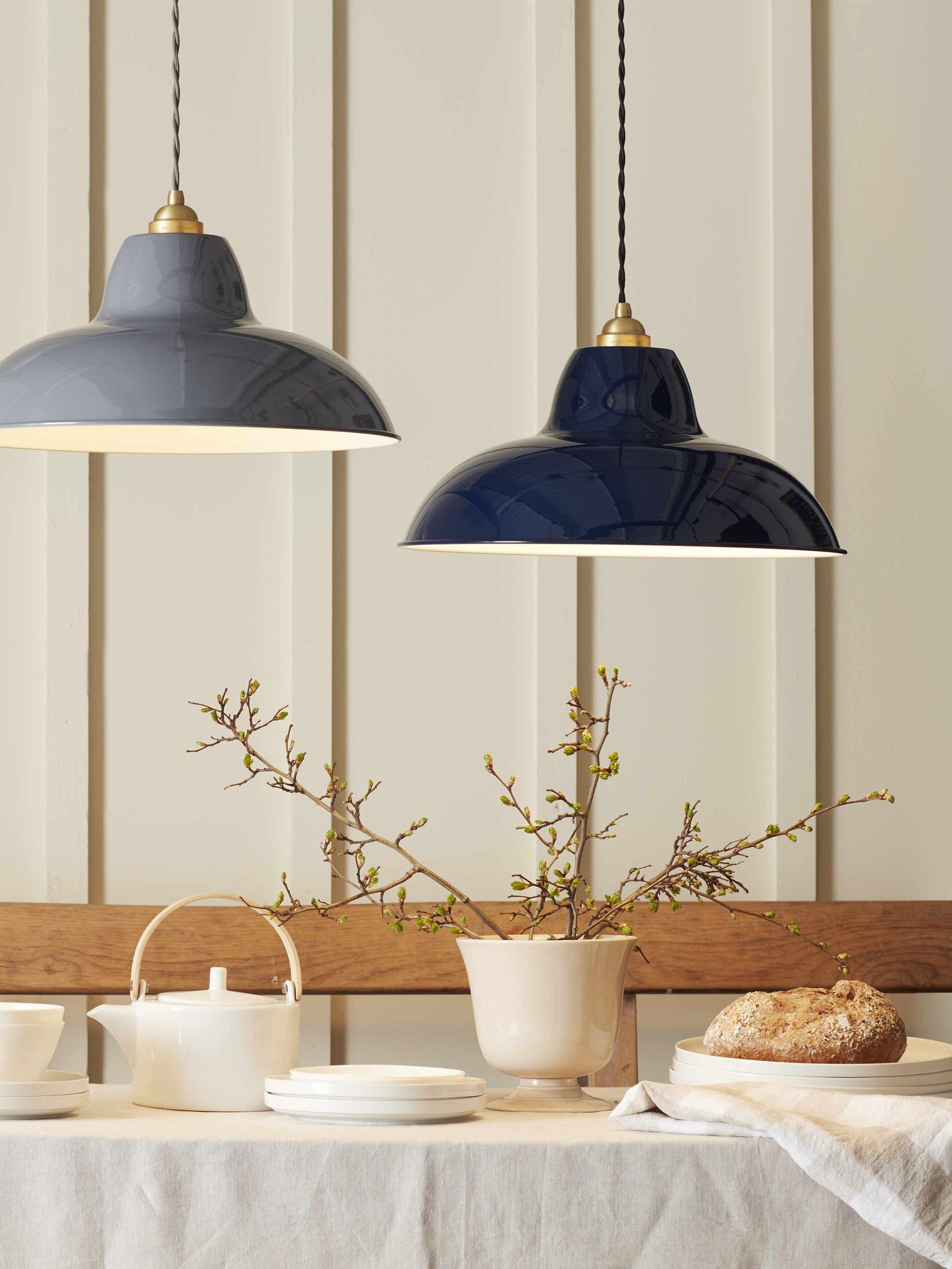 With its wider diameter and lower profile compared to standard Original 1227 pendants, this is a design first from Anglepoise. Its saucer-style shape is the perfect size and profile for making a statement above a dining table or in a kitchen. Made from high-quality metal in a high-gloss finish and accented with brass hardware, it's height-adjustable at the point of installation and will cast a warm and direct glow of light. One LED bulb is required.
