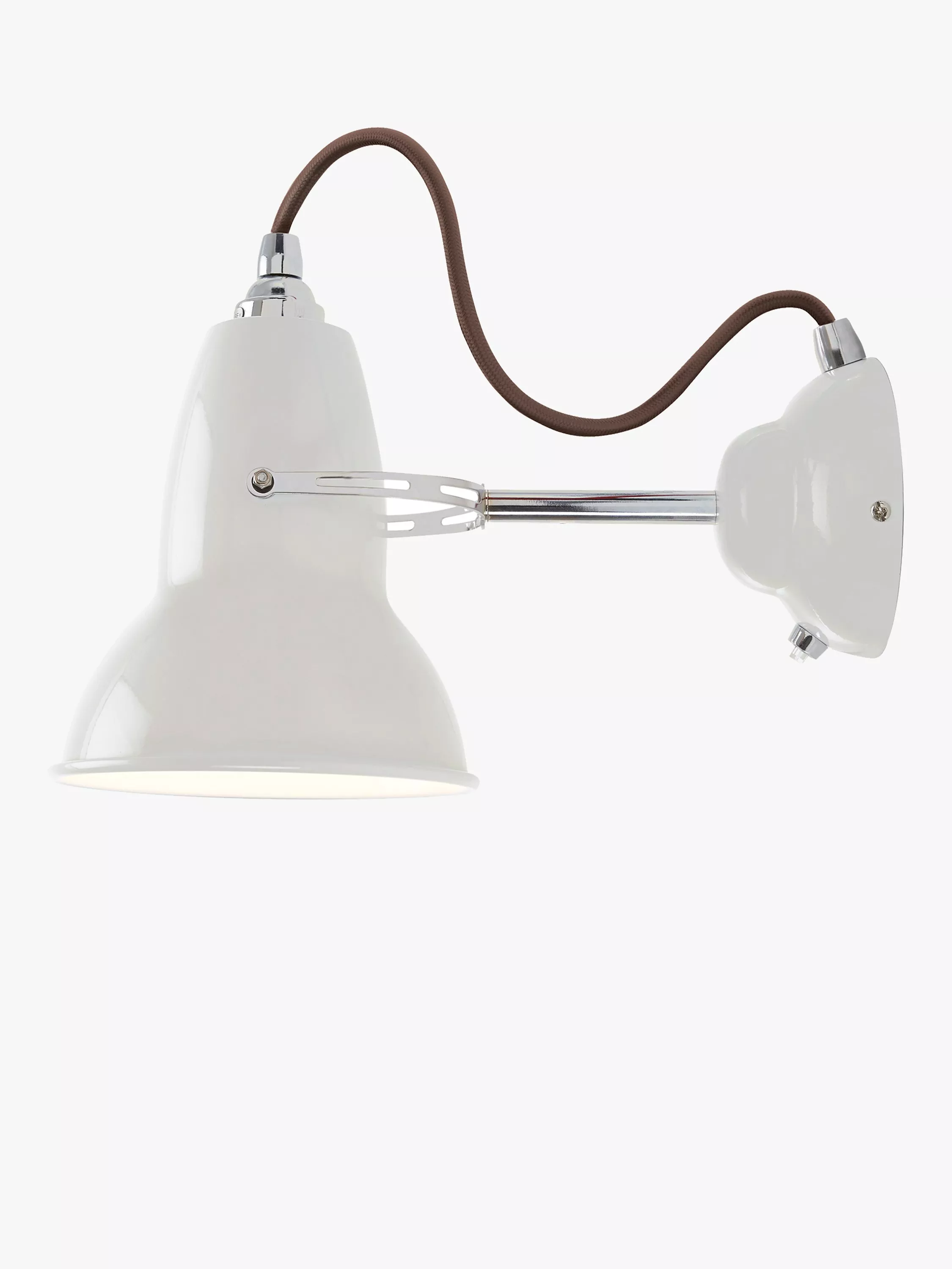 The chrome fittings and coloured braided cable give a contemporary twist to the retro aesthetic of this compact wall light.
