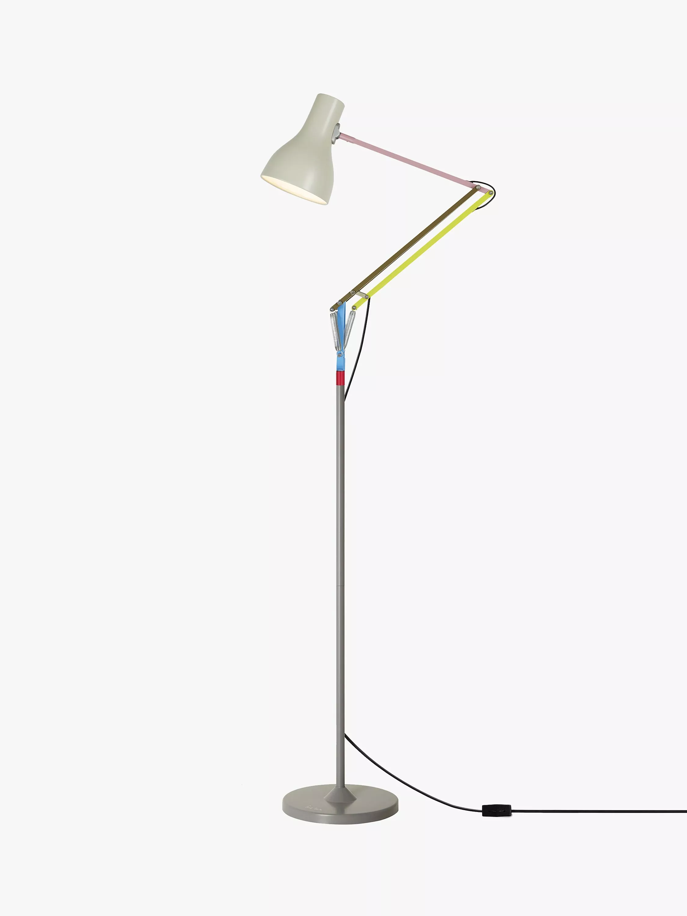 Edition One offers a brilliant application of colour to Sir Kenneth Grange's timeless Type 75 floor lamp, which combines the form and function of an Anglepoise desk lamp, with the added freedom and functionality of a floor-standing design. Part of a collaboration with designer Paul Smith, its muted colour palette and iconic silhouette will become a real point of focus in your space. A replaceable LED bulb is provided and it offers a warm and direct glow of light.